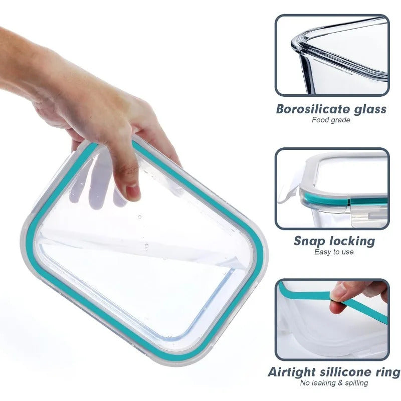 - AIRTIGHT LID LOCKS: The snap locking lids of these glass meal prep containers create a secure seal, ensuring that your food stays fresh and delicious.No more worrying about spills or leaks, allowing you to carry meals on the go.