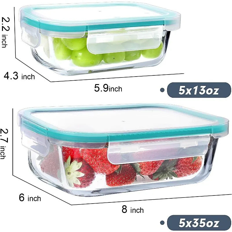 - VERSATILE MEAL STORAGE CONTAINERS: Our 10-pack glass food storage containers are designed to meet your meal prepping needs.With 35oz and 13oz capacity options, you can easily portion your meals and keep them organized.