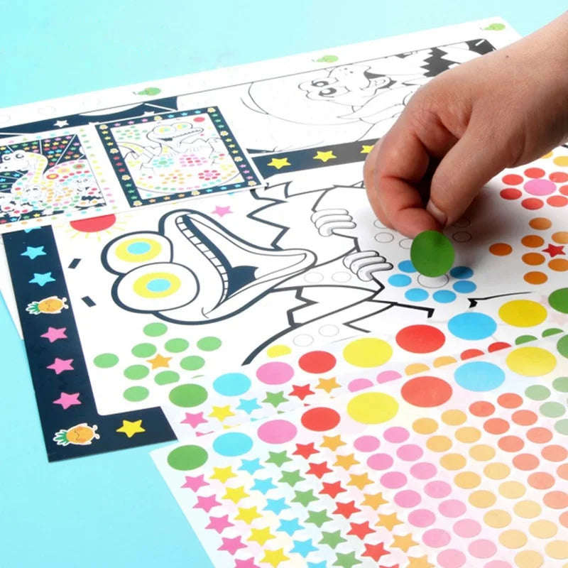 10 Sheets/Lot Funny Puzzle Dot Stickers For Kids Cute Cartoon Animal Drawing Mosaic Sticker Children Early Educational Patience