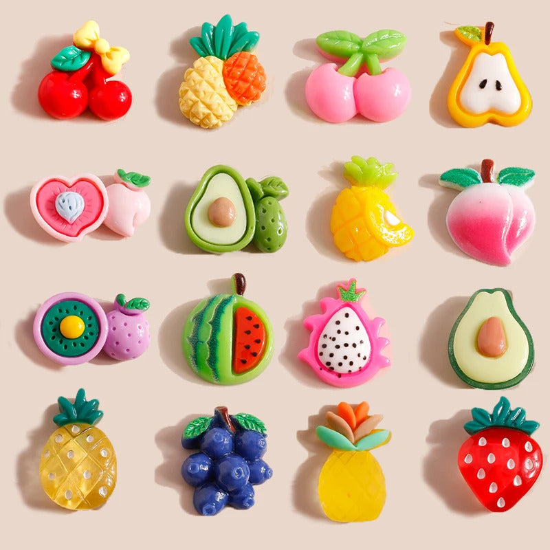 10pcs Mix Cute Mini Fruit Charms Pear Cherry Pineapple Peach Avocado Flat Back Resin Cabochons Scrapbook DIY Jewelry Accessories
