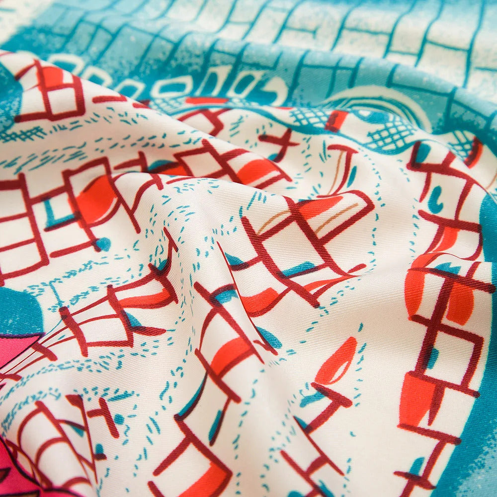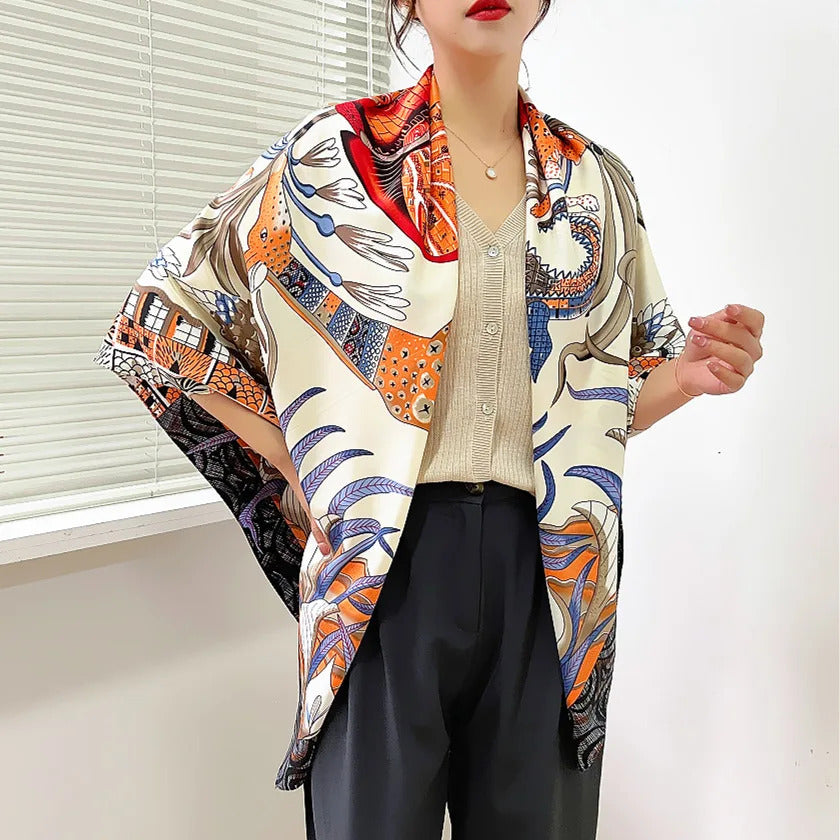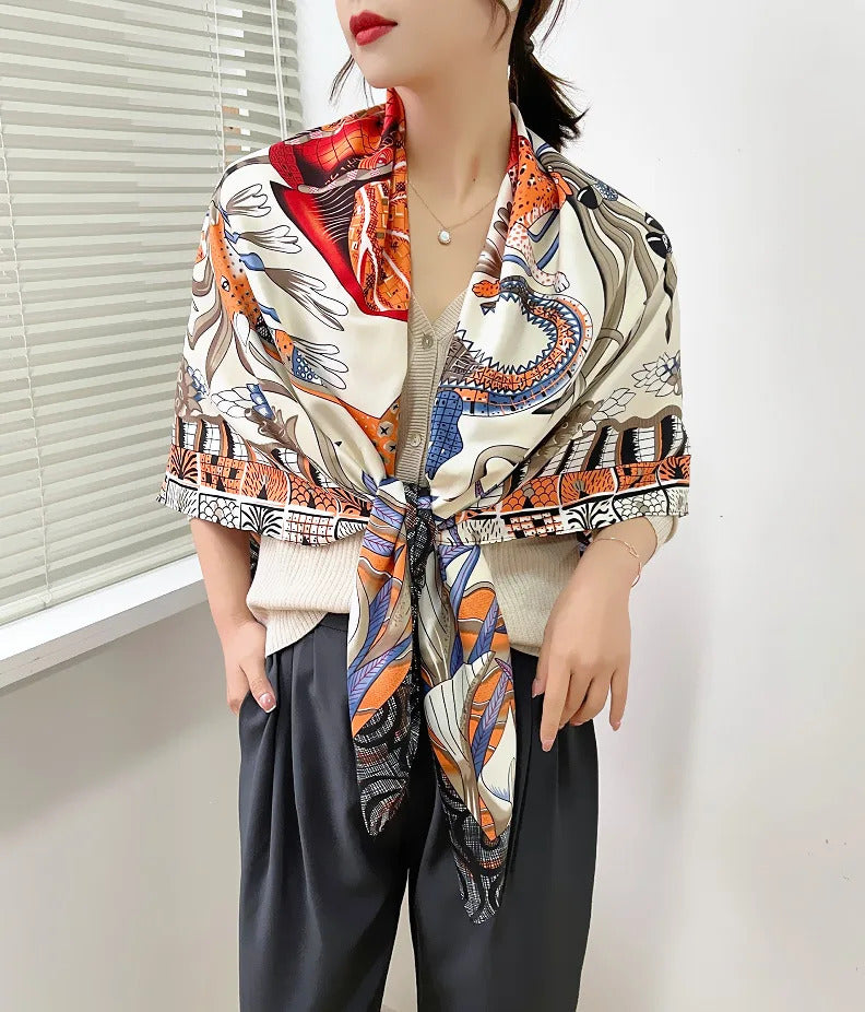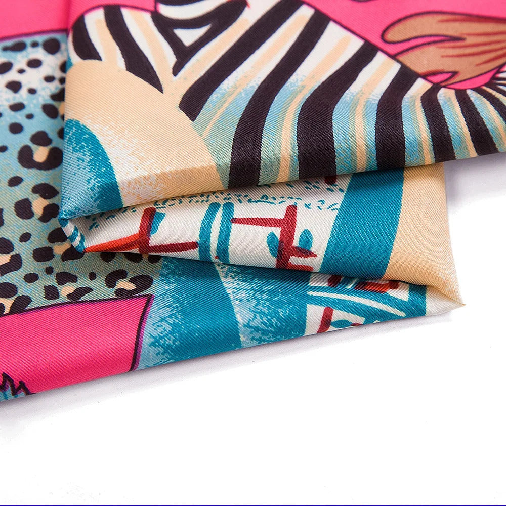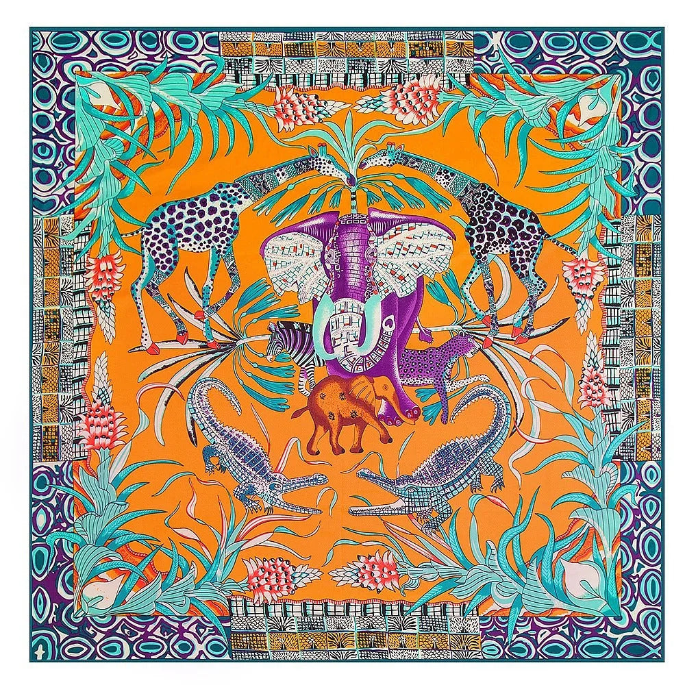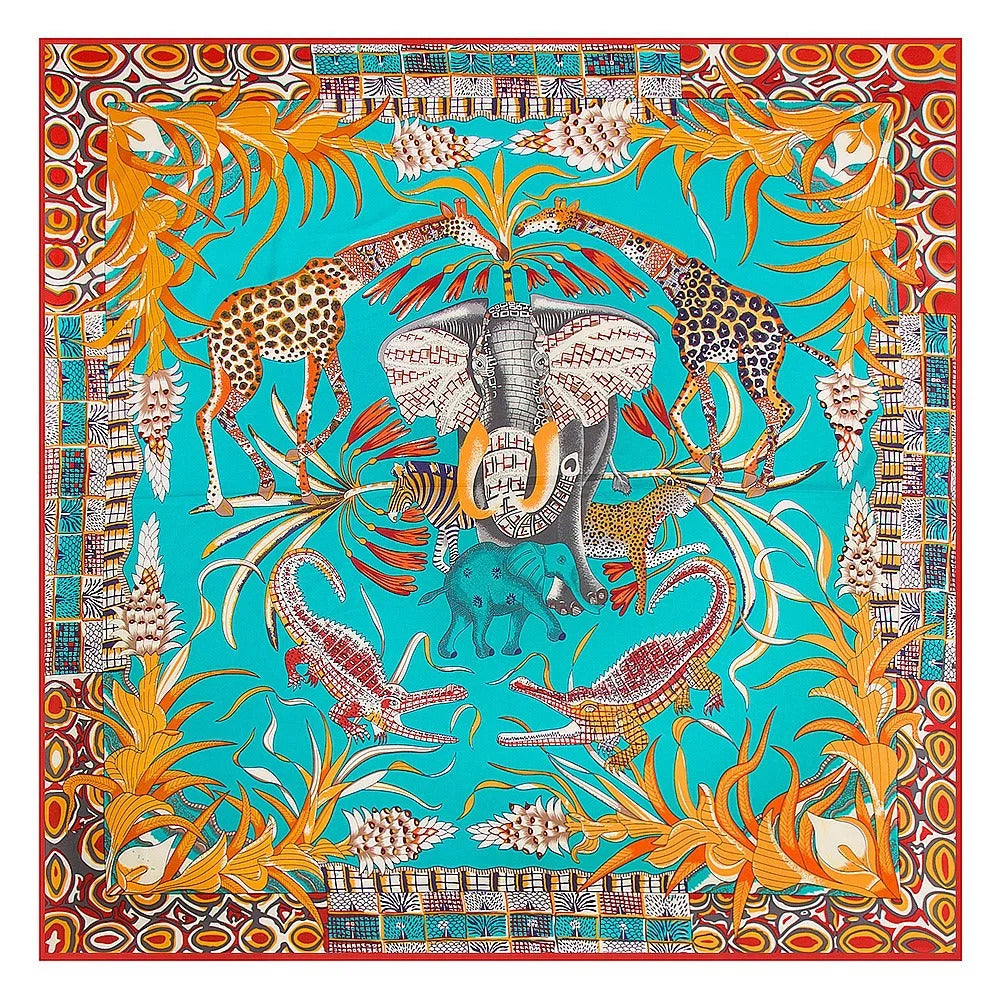 130x130CM Twill Silk Square Scarf Animals Print Women Scarves&Wrap Giraffe Neckerchief Spanish Large Bandana Neck Shawl Wraps