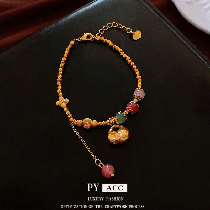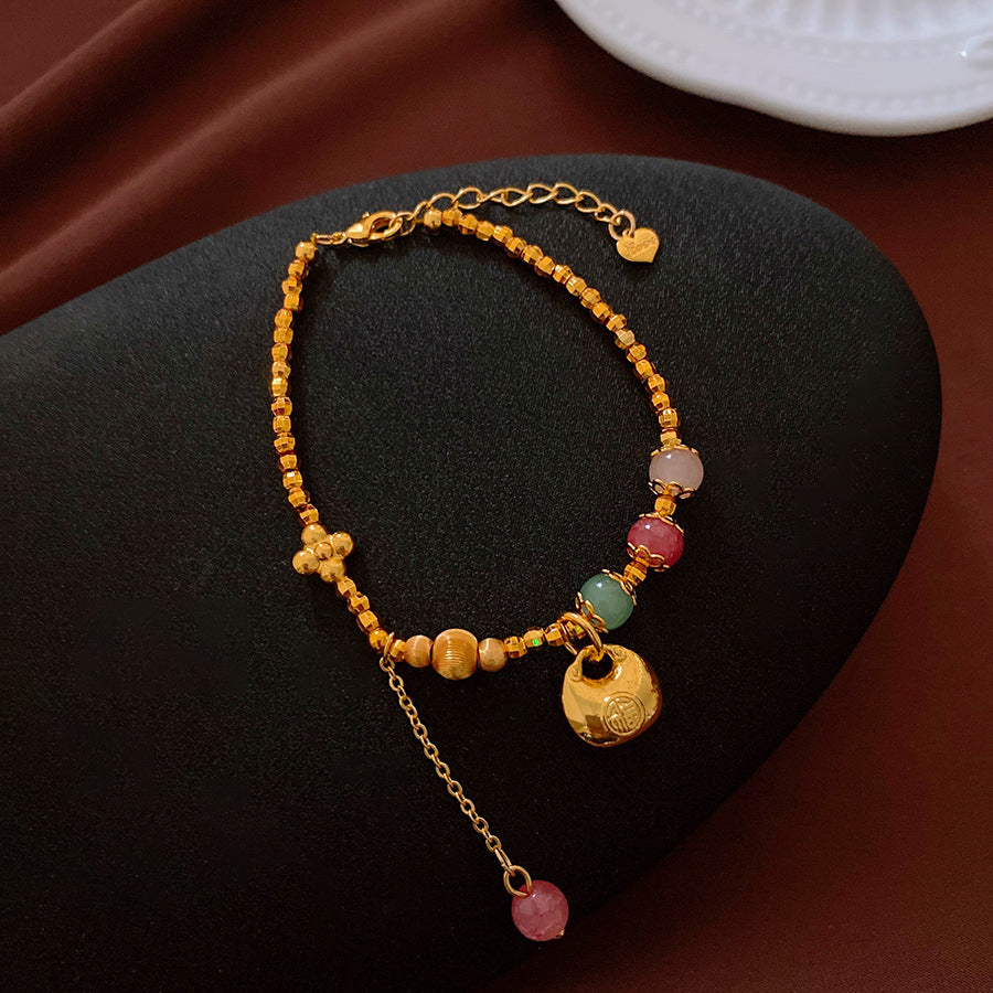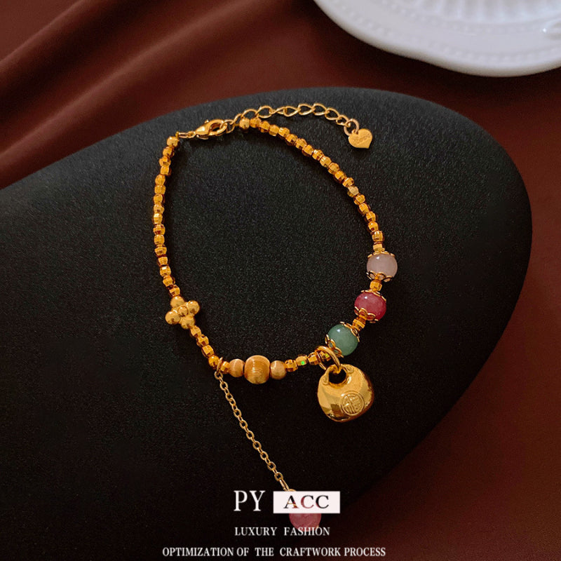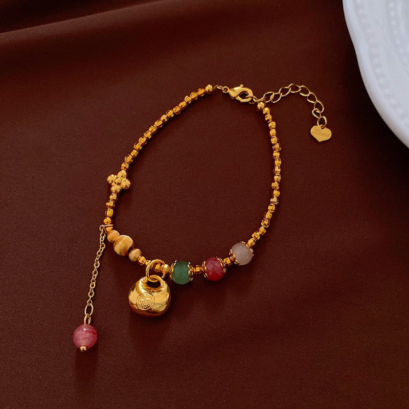 18K Real Gold Plated Lucky Bag Pendant Bracelet New Chinese Style Versatile Bracelet