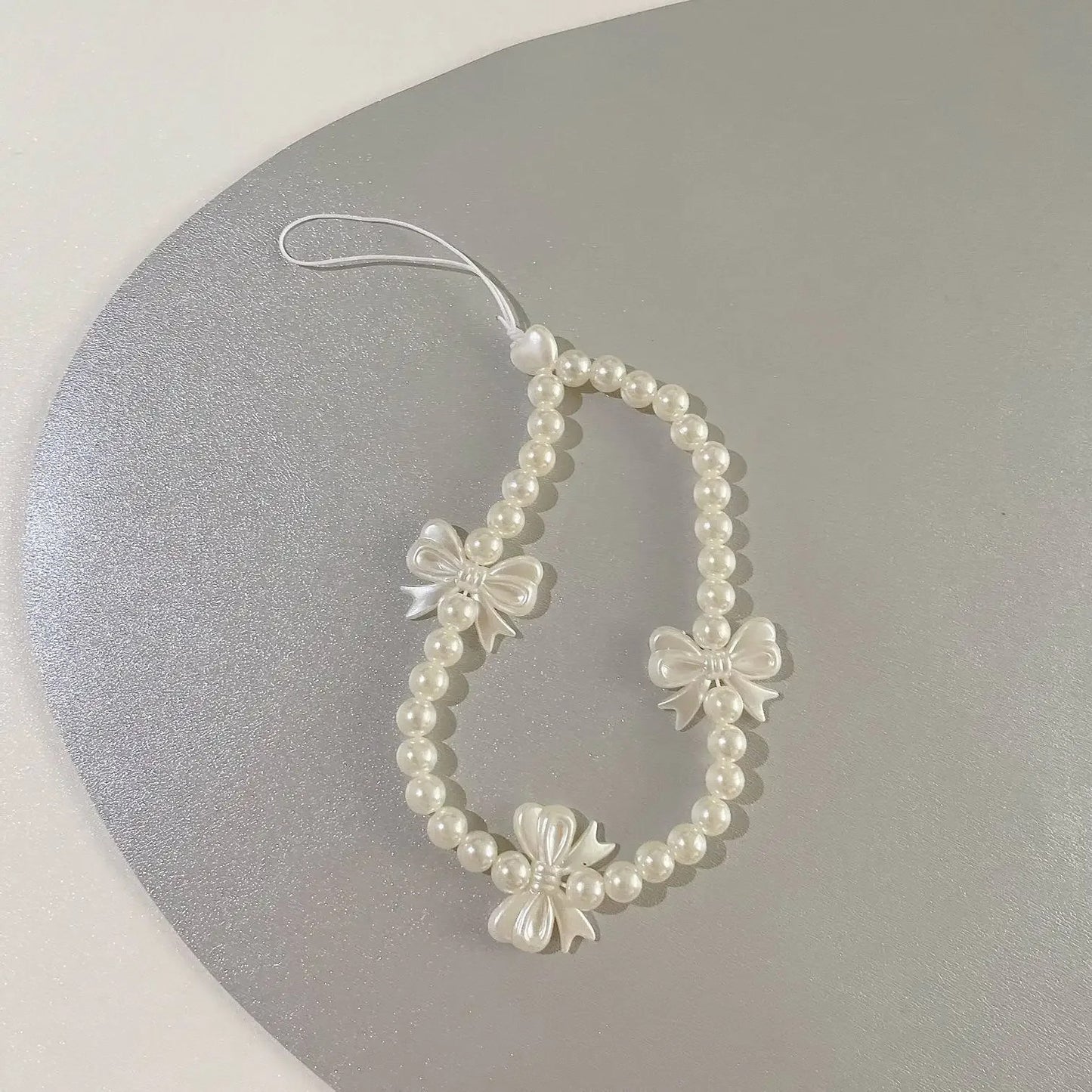 1pc Acrylic Mobile Phone Chain DIY Handmade Pearl Heart Bowknot Bear Beads for Women Girls Charm Telephone Lanyard Hanging Rope