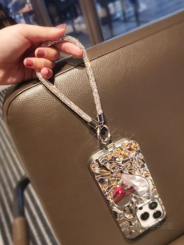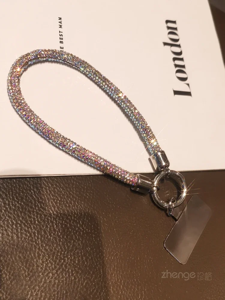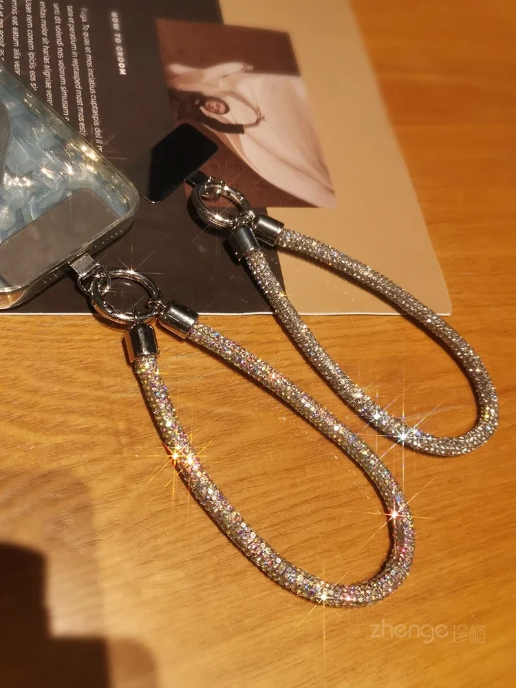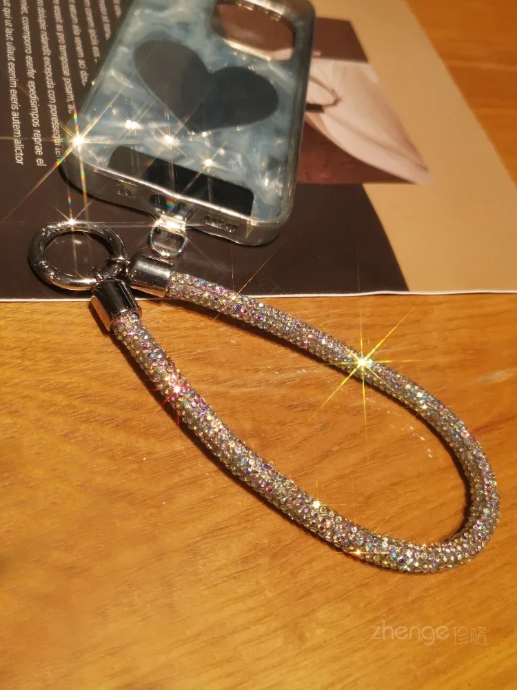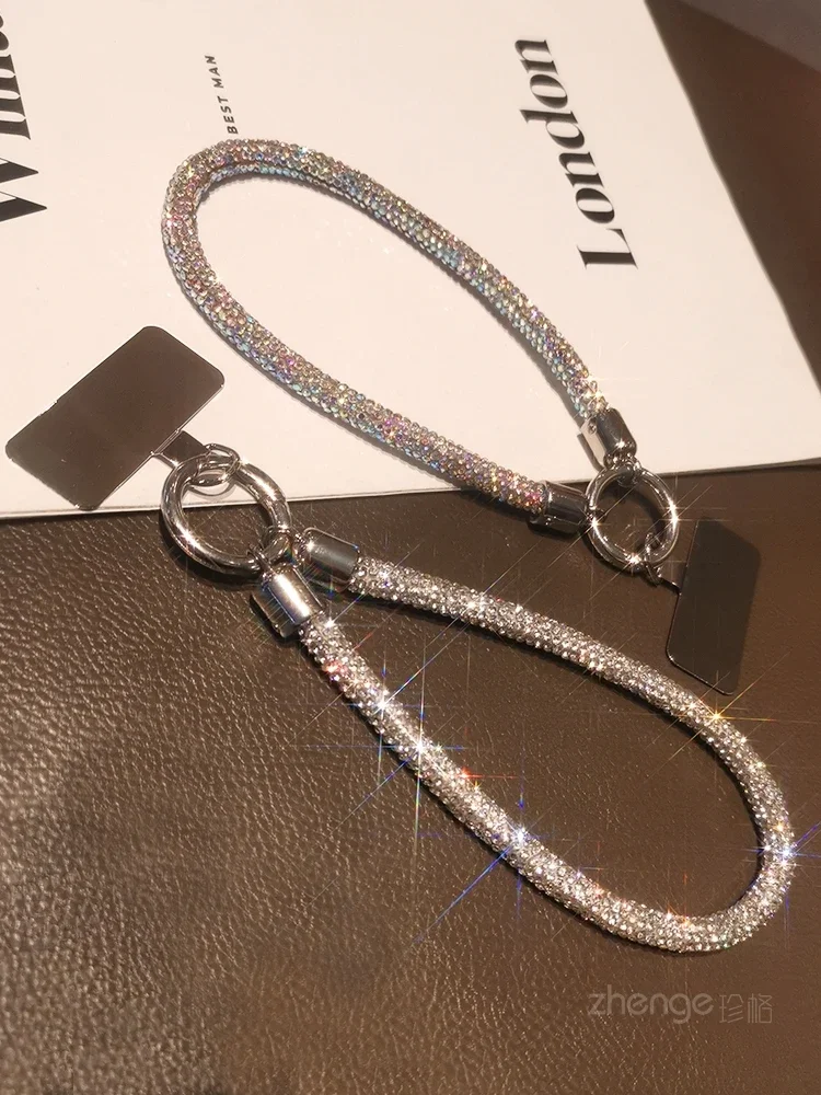 1pc Short Full Diamond Mobile Phone Lanyard Women's Small Fragrant Wind Short Wrist Case Universal Anyard Metal Clip Lanyard
