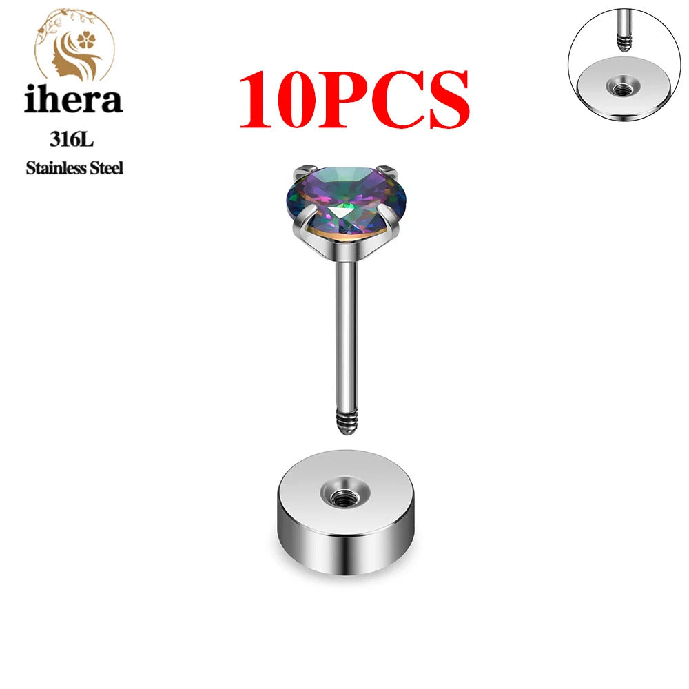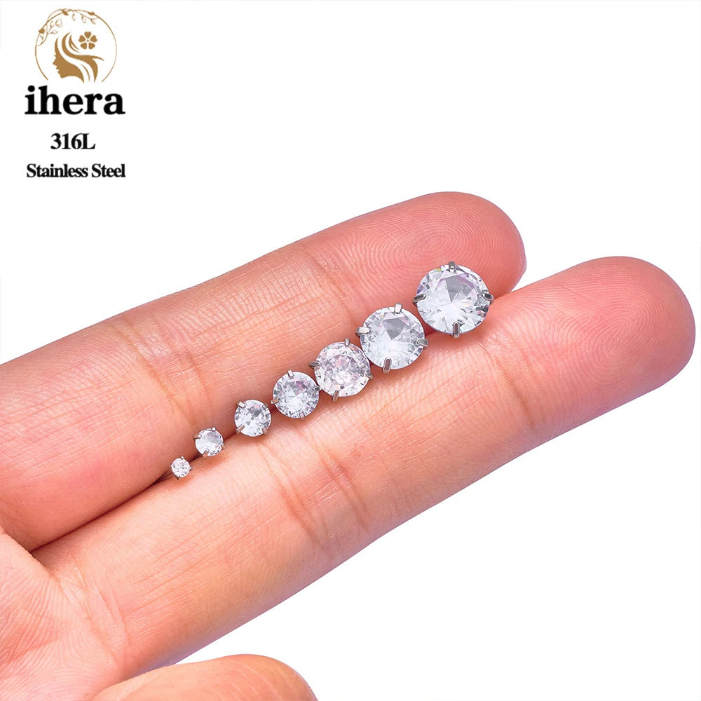 2/10PCS Stainless Steel 4 Prong Ear Studs Earrings Round Crystal Zircon Women Men Tragus Cartilage Piercing Fashion Jewelry
