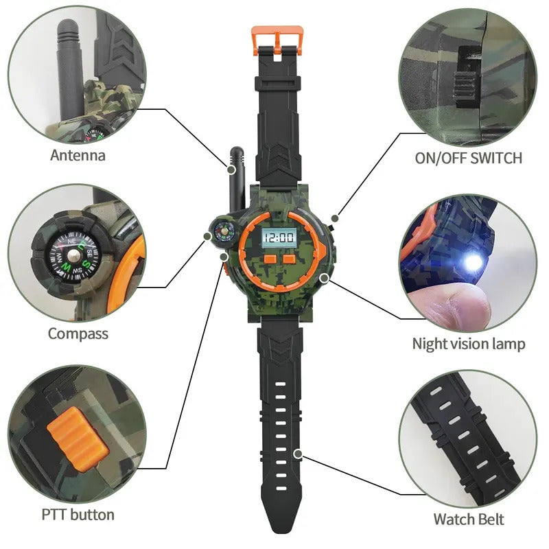 Multifunction: Walkie Talkie, Calling, Night light, Compass, Timekeeping, Time, Date.