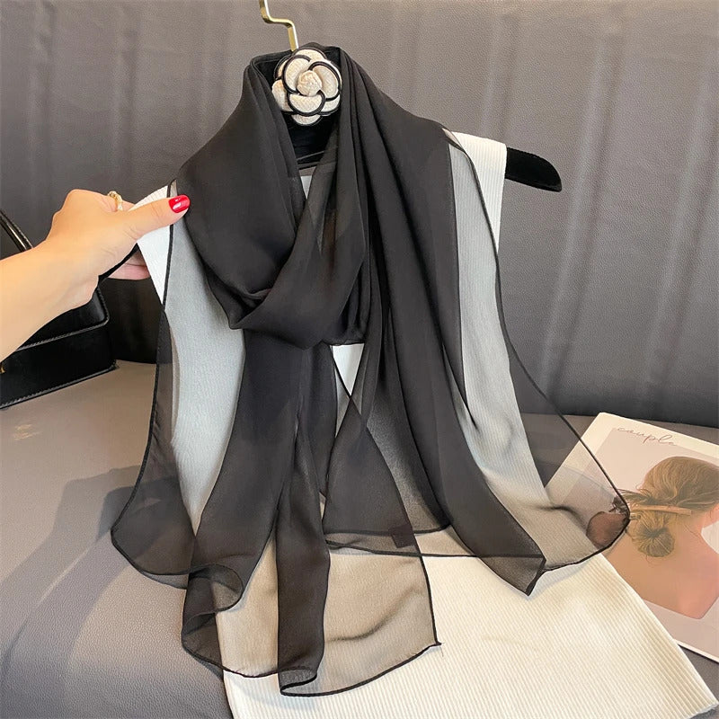 2023 New Fashion Summer Women Soild Color Beach Scarf Silk Shawls Headband Female Headband Wraps Sunscreen Hijab Wholesale
