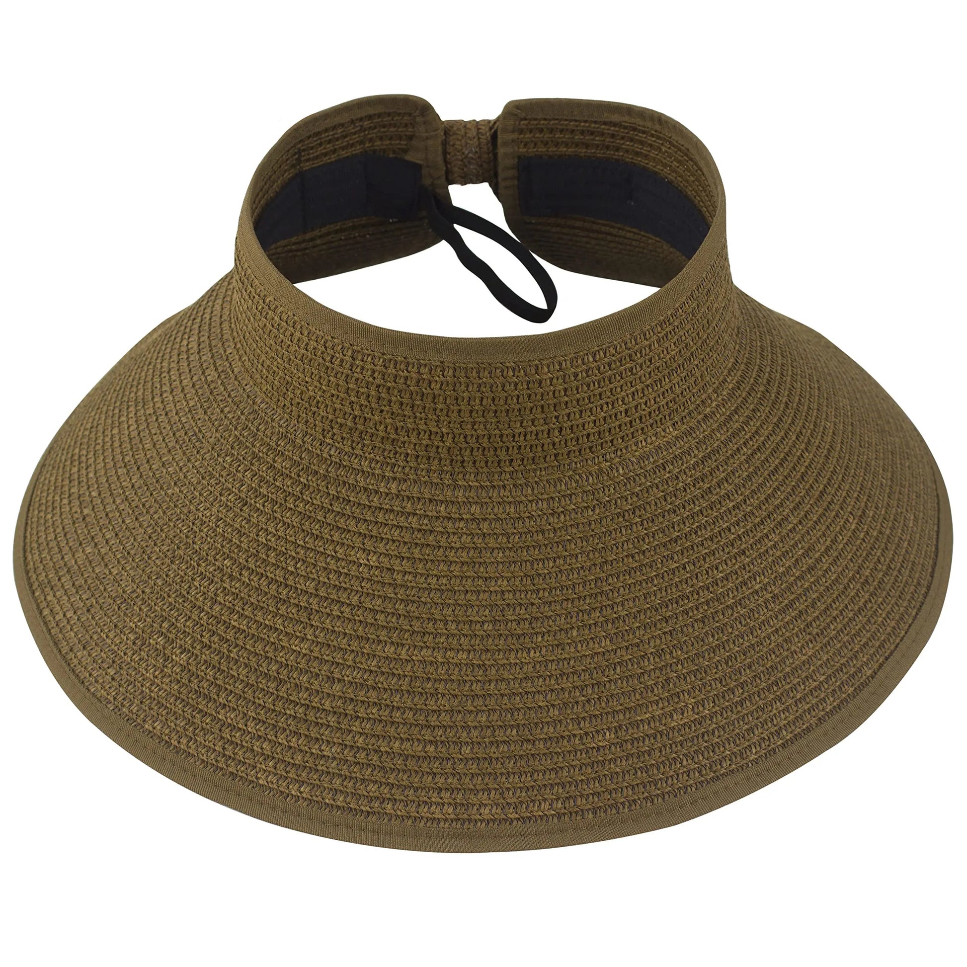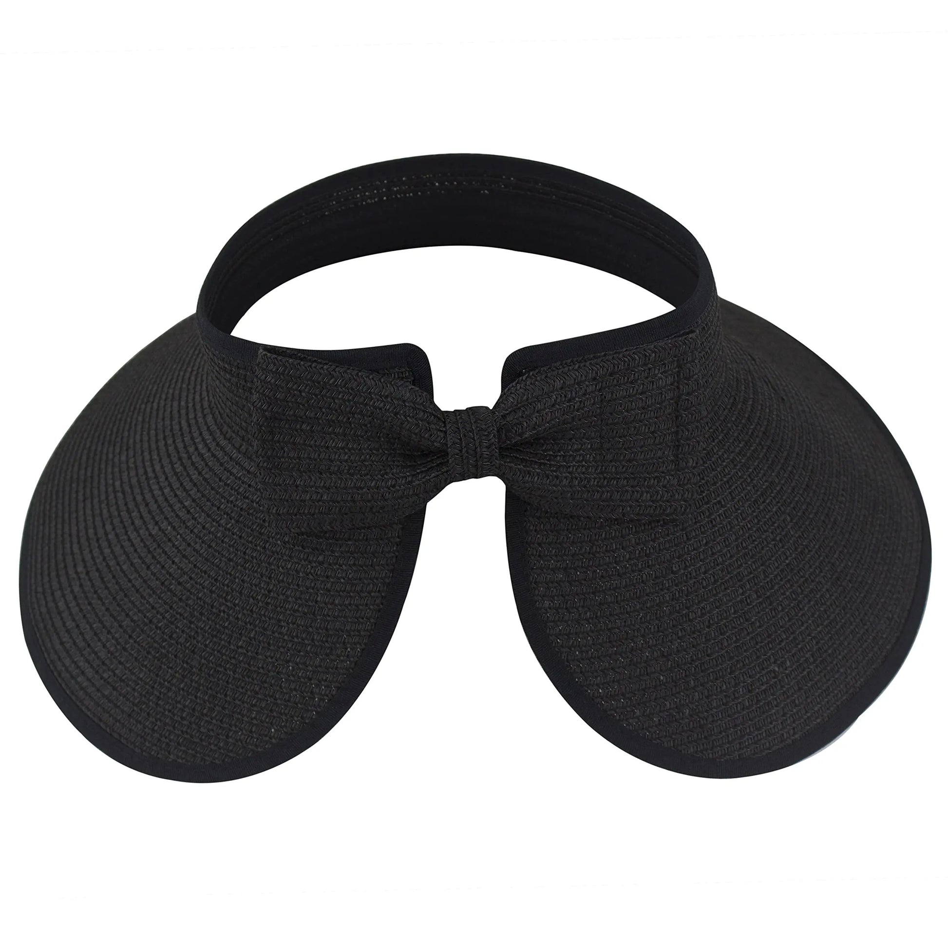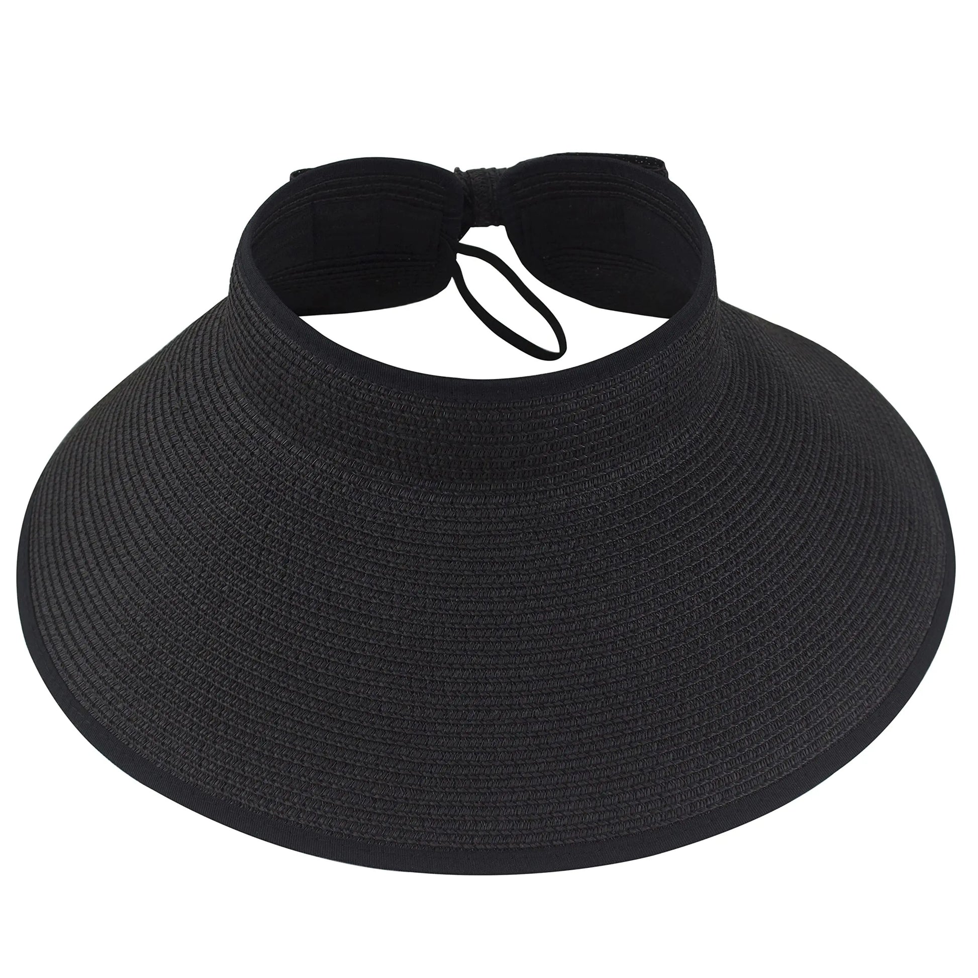 2023 New Women Roll Up Sun Visor Wide Brim Straw Hat Summer Foldable Packable UV Protection Cap for Beach Travel Bonnet