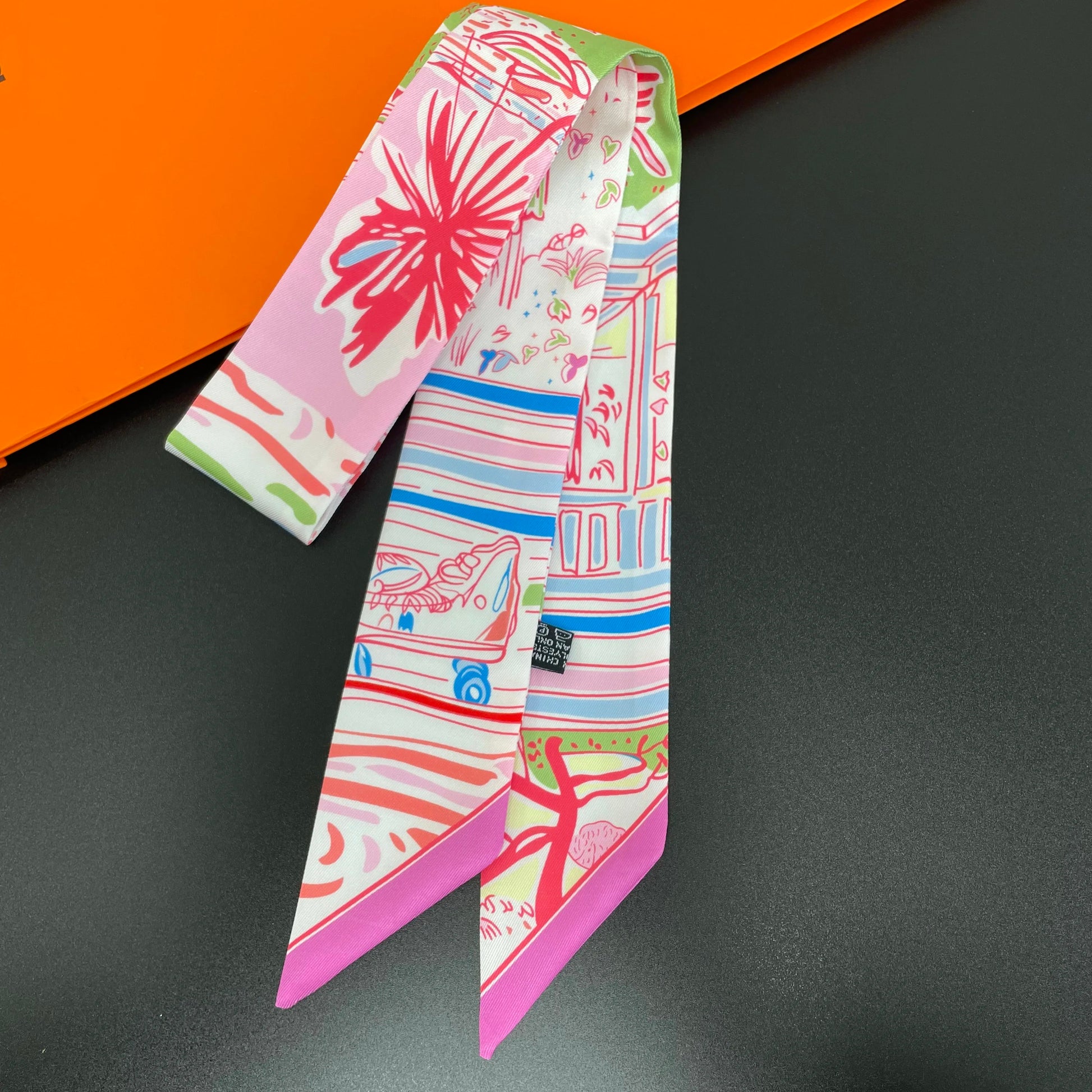2024 Brand Design Leopard Twill Silk Scarf Luxury Scarf Women Foulard Skinny Bag Scarves Neckerchief Fashion Hair Headband