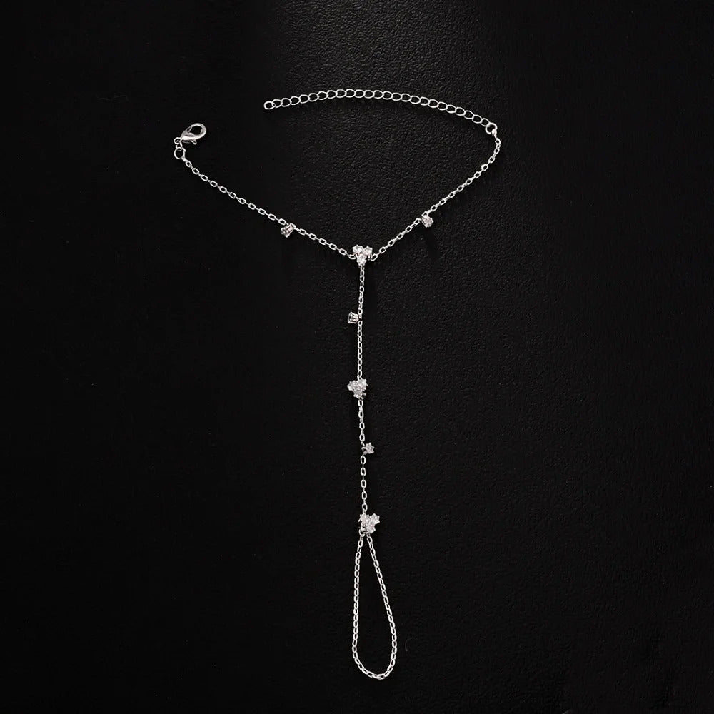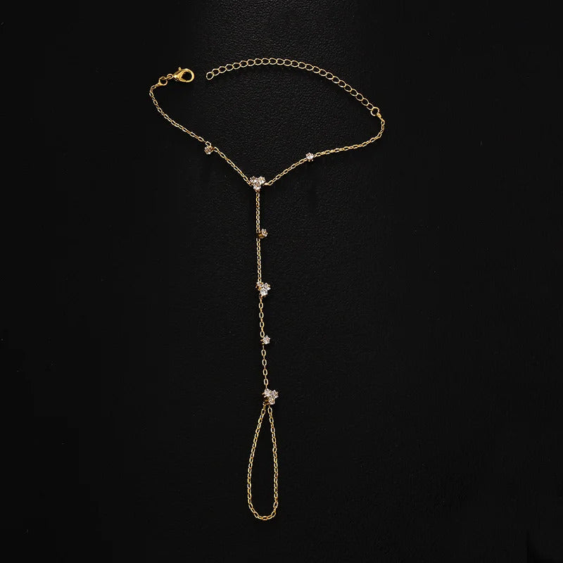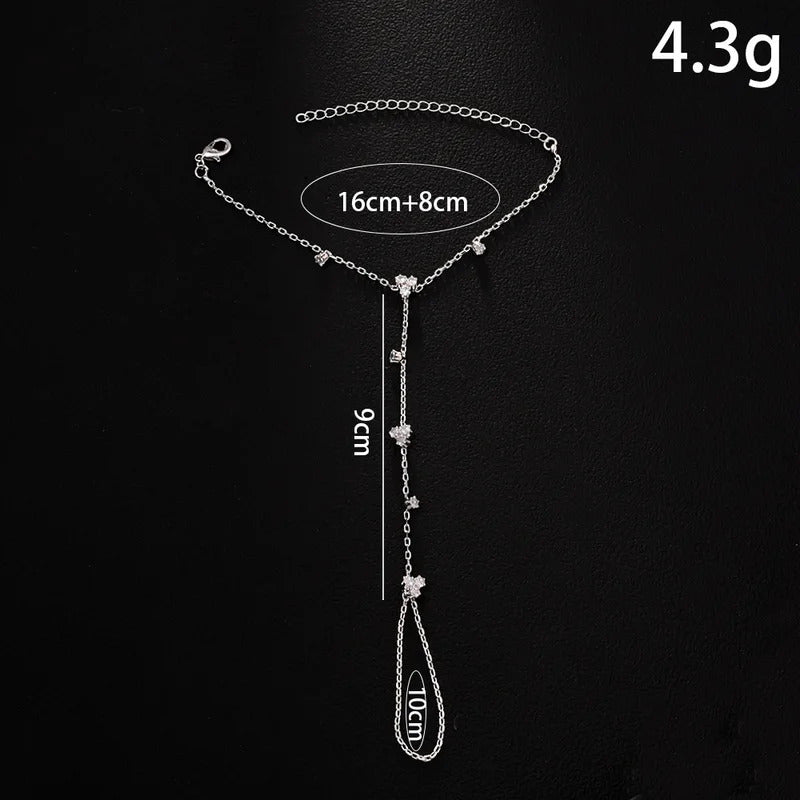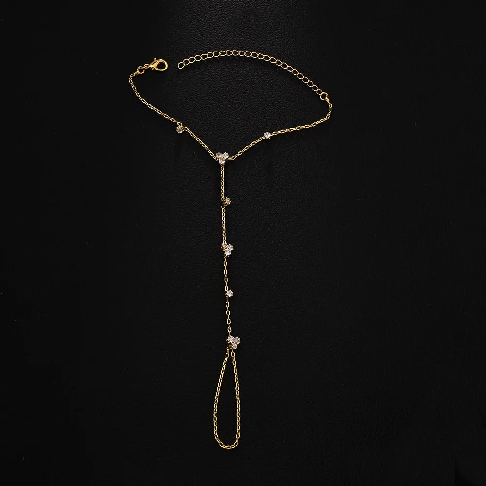 2025 Fashion Round Crystal Finger Bracelet Bangle High Quality Jewelry Intersperse Geometric Rhinestone Hand Chain Adjustable