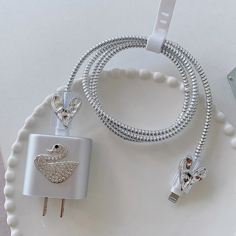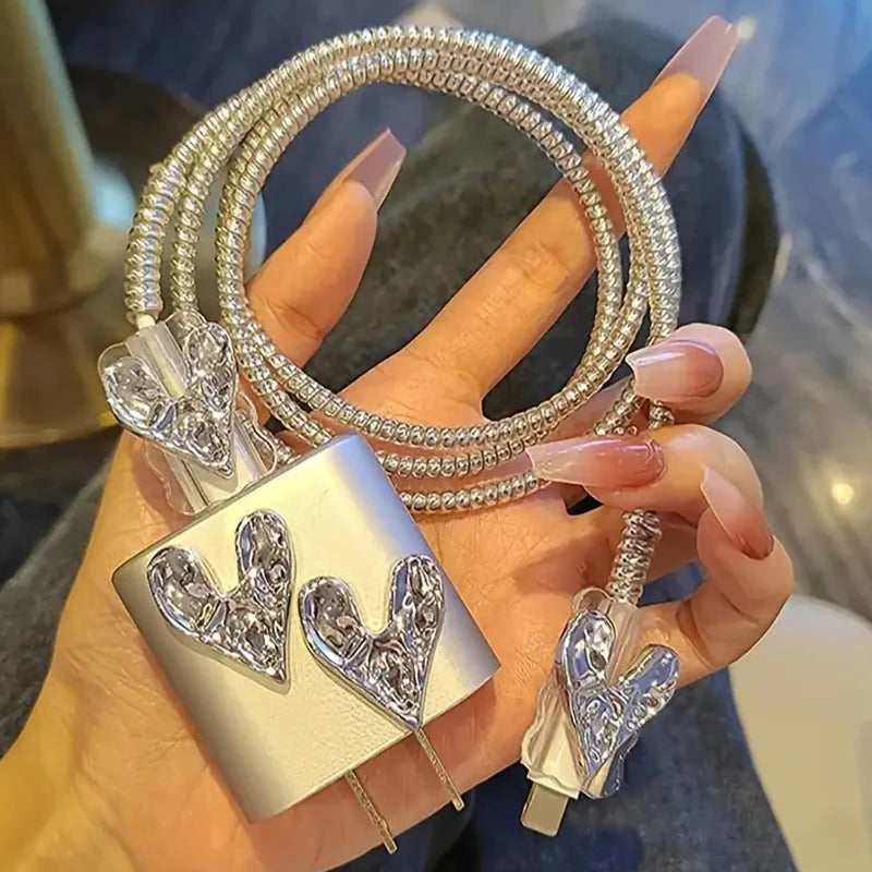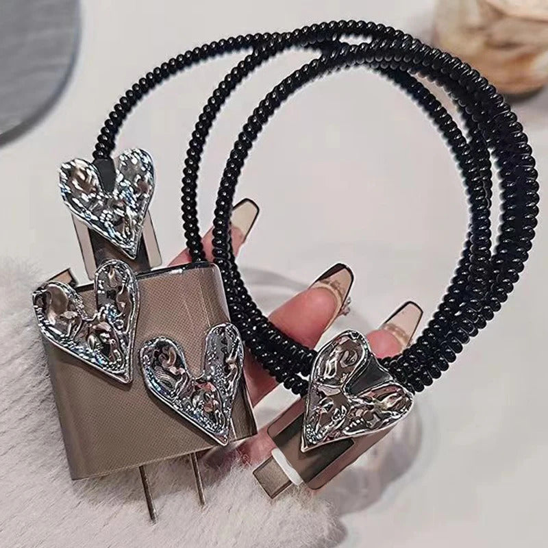3D Pink Bow Cable Charger Protector Cover For IPhone IPad 18W 20W Original Charger 2024 New Data Line Spiral Winder Protective