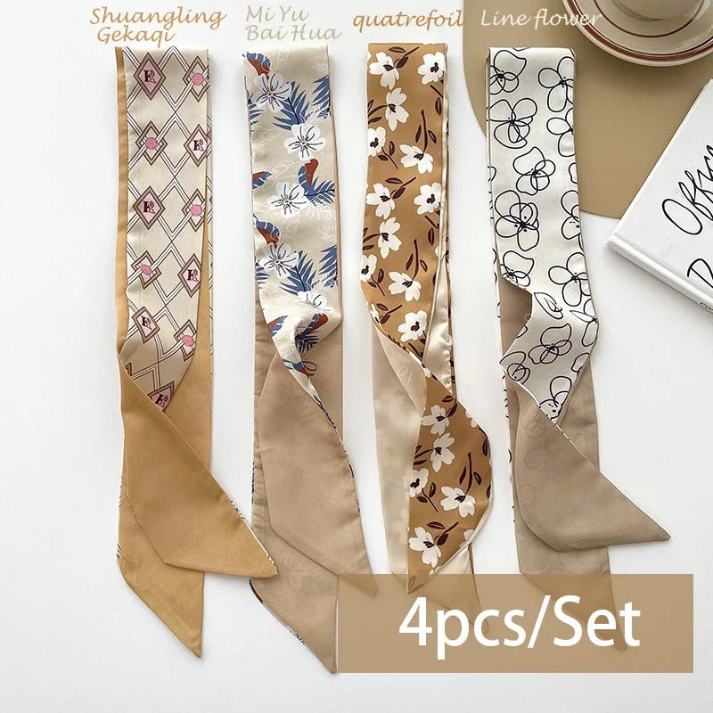 4pcs/set Series Silk Satin Scarf Women Cloth Hair Bands Headdress Accessories Lady Scarves Ribbon Neck Ties for Bag Handle