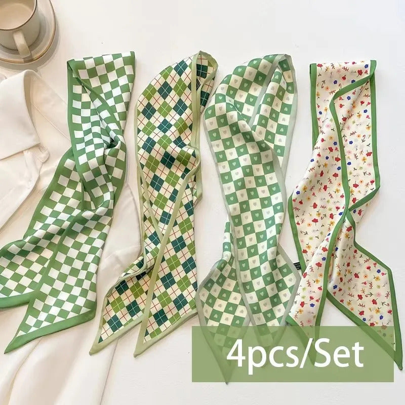 4pcs/set Series Silk Satin Scarf Women Cloth Hair Bands Headdress Accessories Lady Scarves Ribbon Neck Ties for Bag Handle