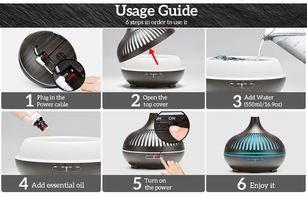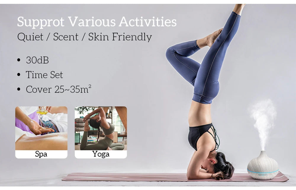 500ML Aromatherapy Essential Oil Diffuser Wood Grain Remote Control Ultrasonic Air Humidifier Cool with 7 Color LED Lights
