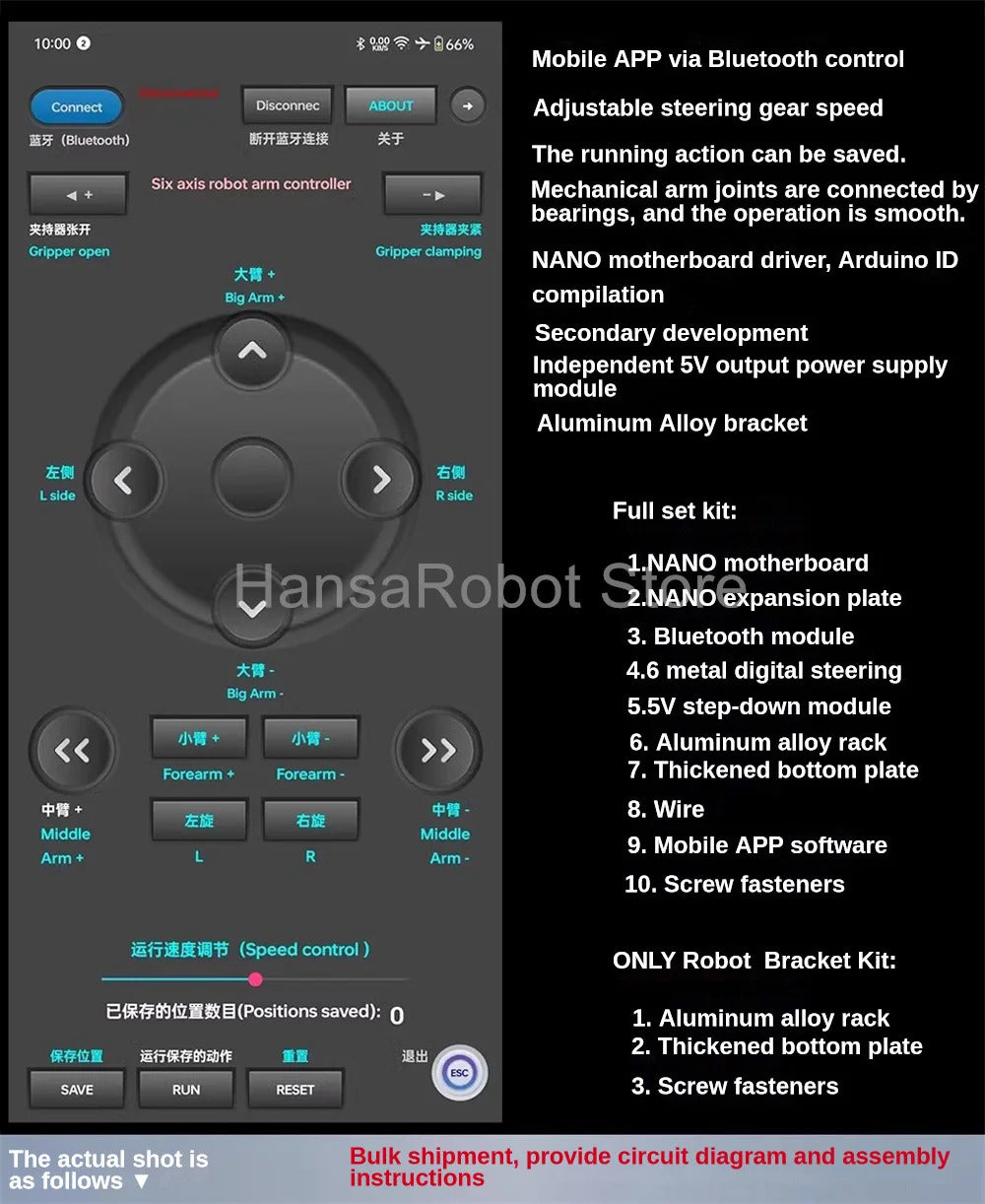 Note: the robot arm is unassembled, we offer the PDF manual.
