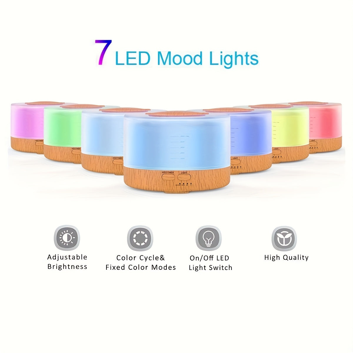 [The aromatherapy diffuser has 7 lighting options]the light is always colorful ( yellow, green, cyan, blue, purple, white, red cycle), and can also be locked with a single button. Let you enjoy different atmospheres at home