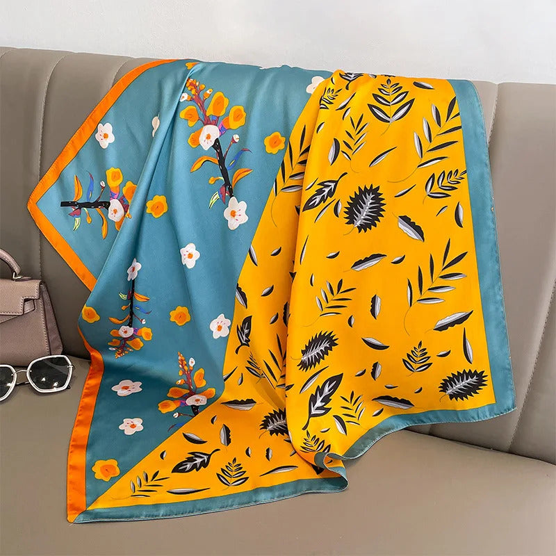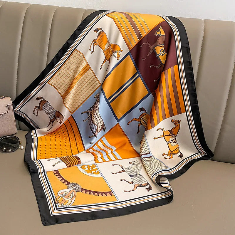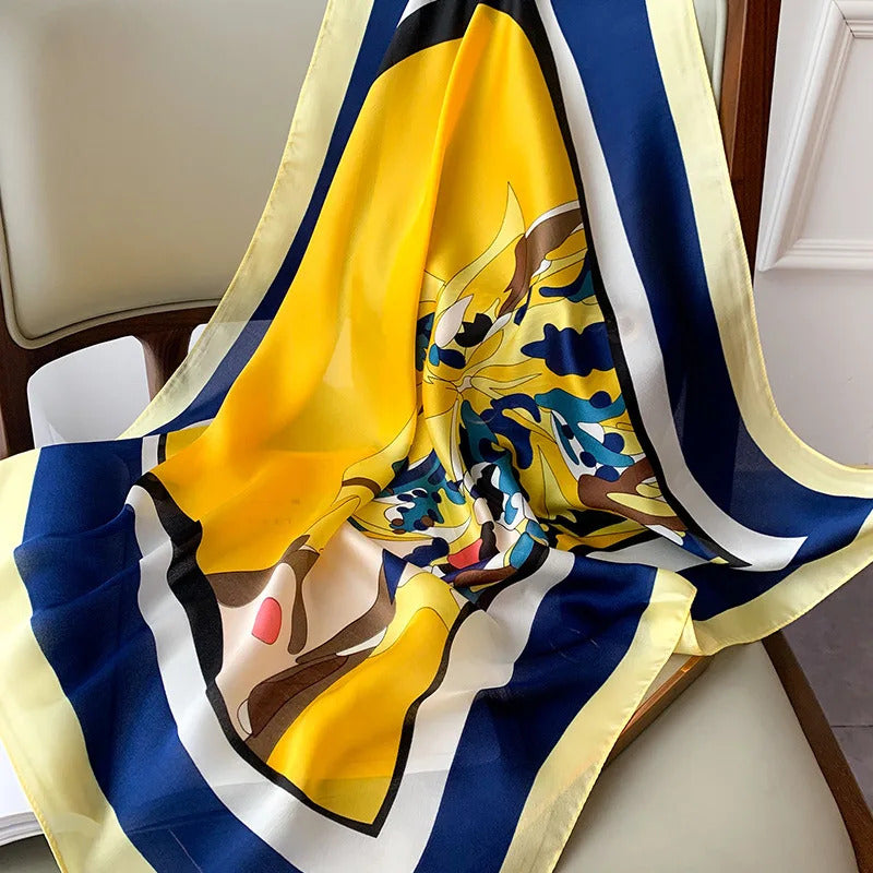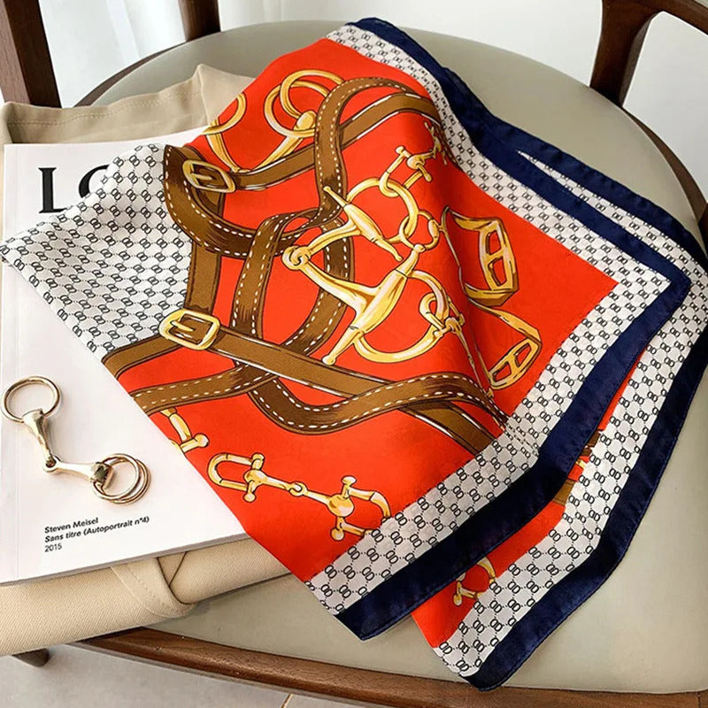 70cm Chain Print Silk Satin Hair Scarf Women Handkerchief Printed Female Square Head Bandana Small Neck Muffler Hijab Lady Girl