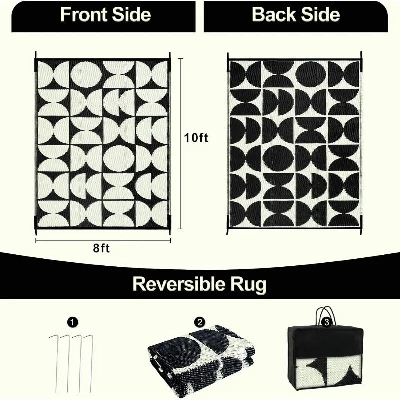 - 【Reversible Rug】-- Bring a touch of boho art charm to your outdoor space with our plastic outdoor rug. Its reversible design lets you switch up your decor easily and enjoy different color combinations that's perfect for your deck, patio, balcony, and more.