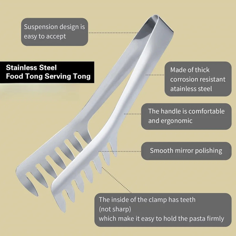 9 Inches 304 Stainless Steel Pasta Tongs Food Clip Steak Bread BBQ Meat Salad Picnic Party Kitchen Baking Cooking Tools