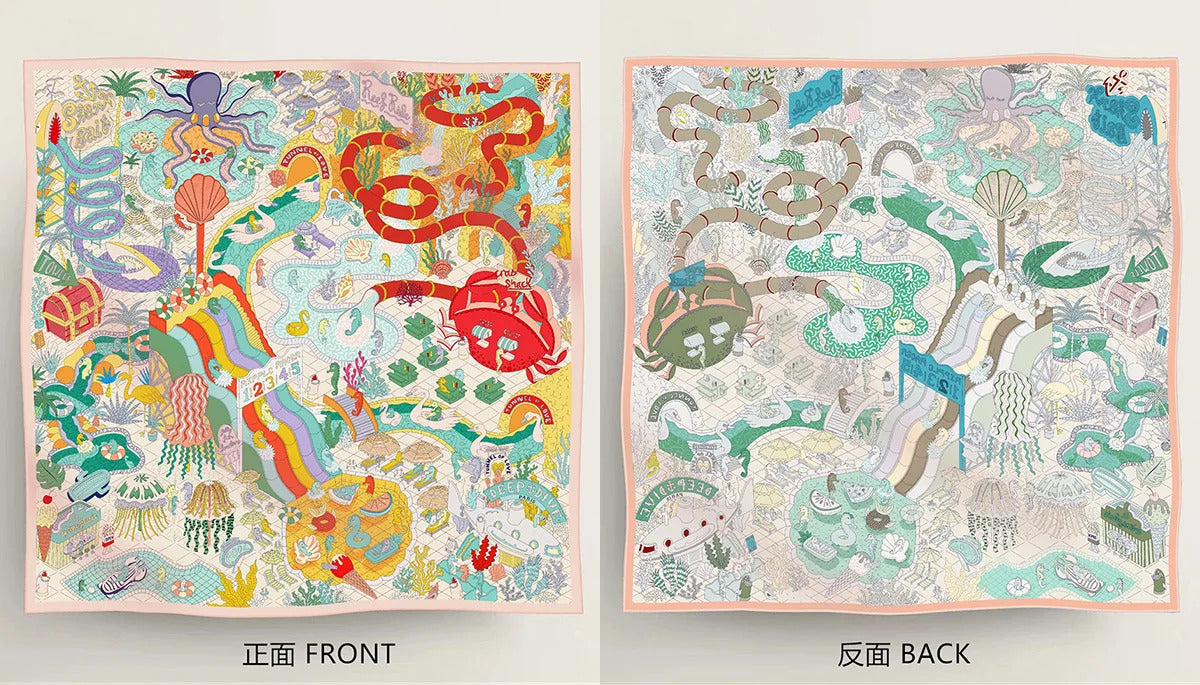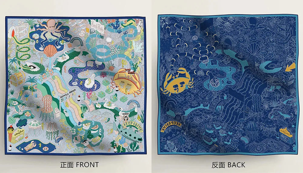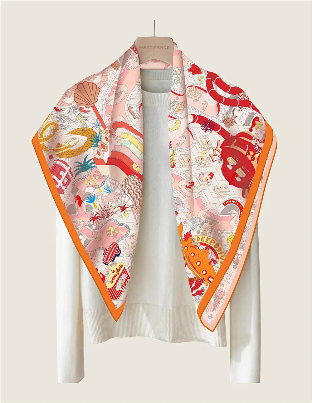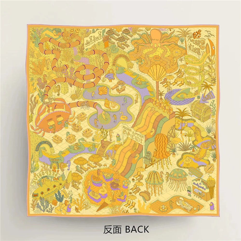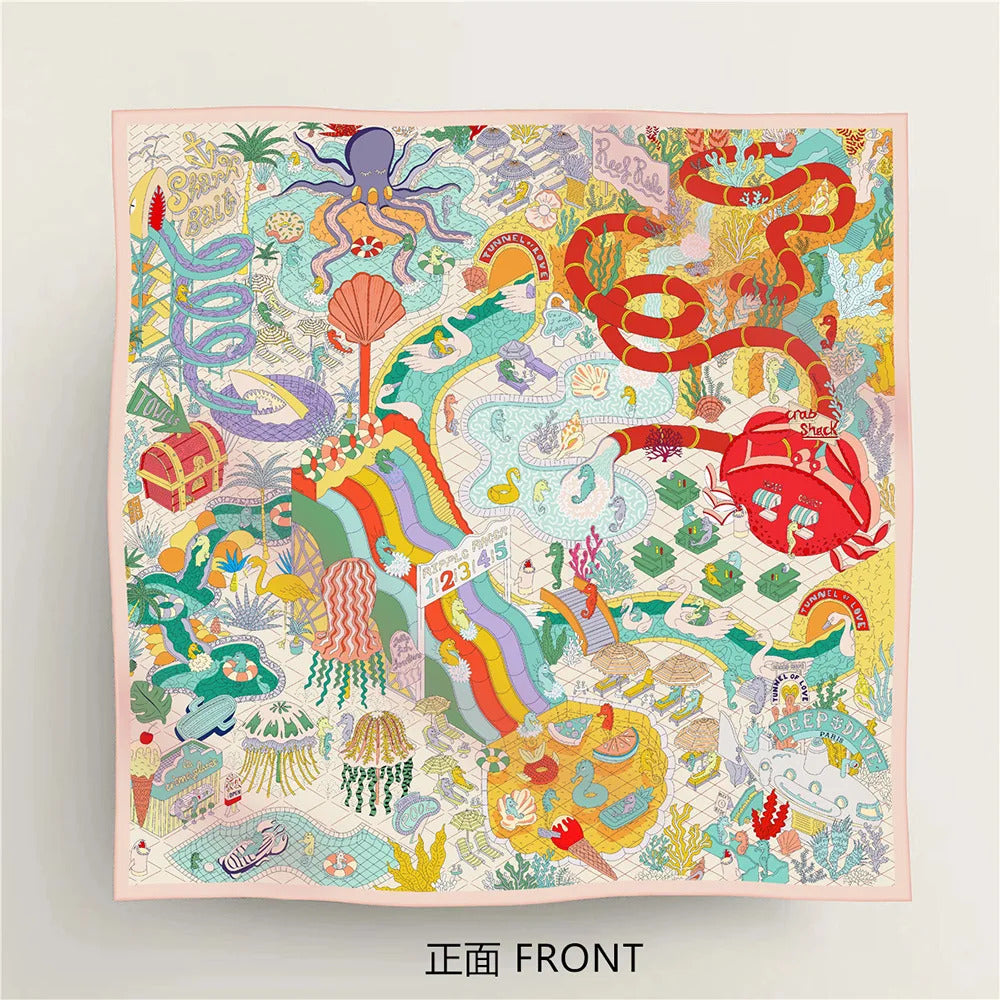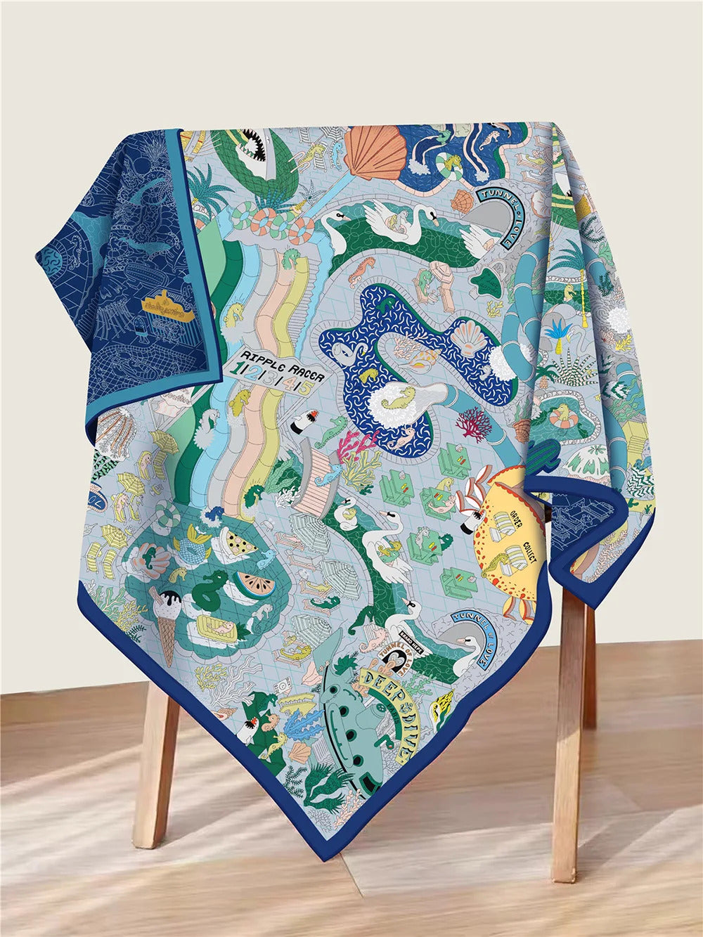90Cm High-quality Twill Silk Double-sided Printing Submarine Playground Women's Large Square Scarf Scarf Chest Wrap Scarf