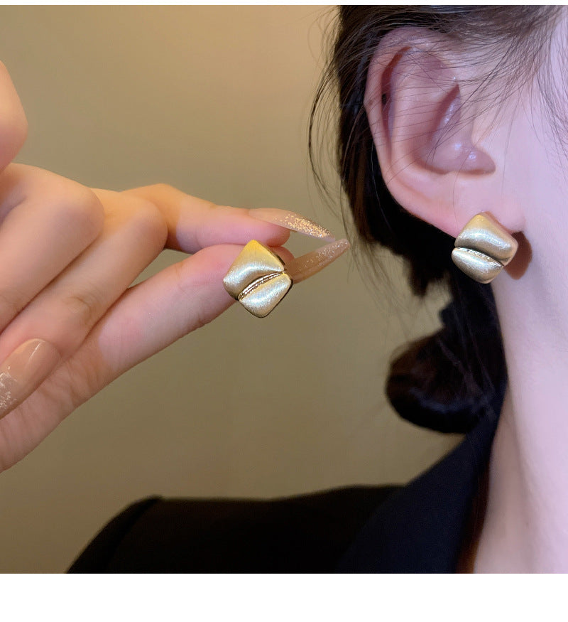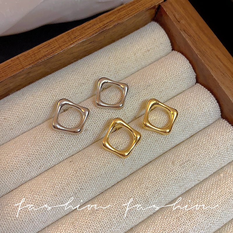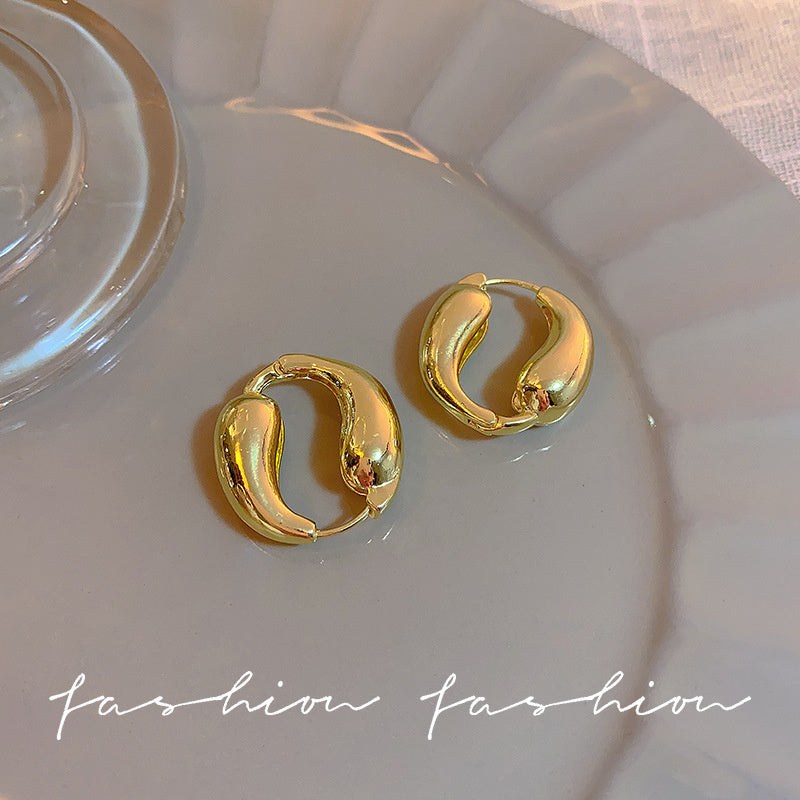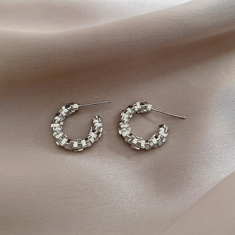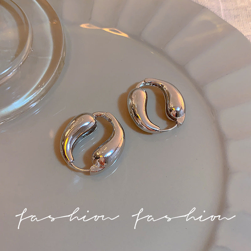 925 Silver Needle Hong Kong Style Retro Metal Earrings Women's High-Grade Geometric Simple Bracelet Ear Clip All-Match Exaggerated Commuter Earrings