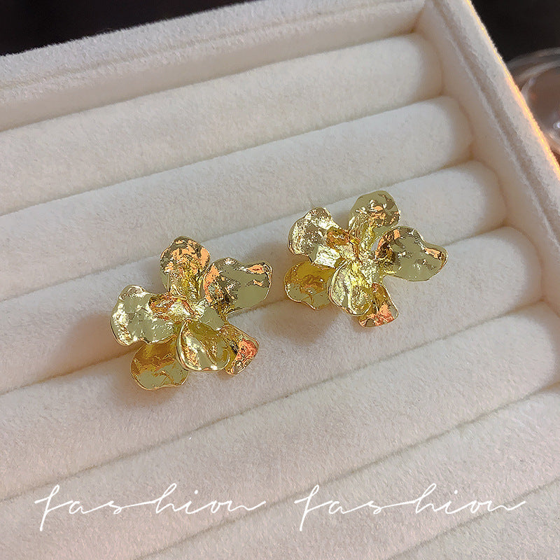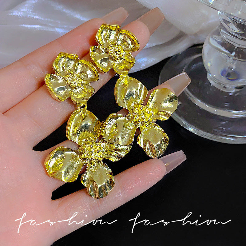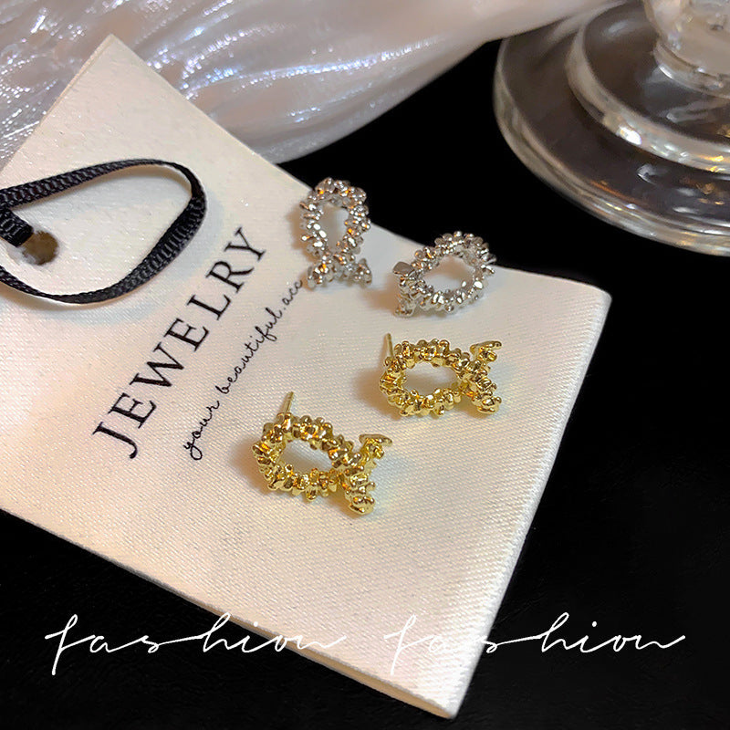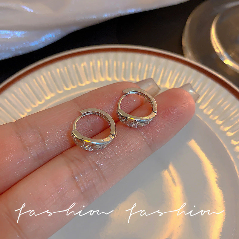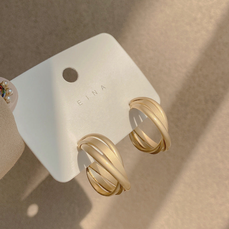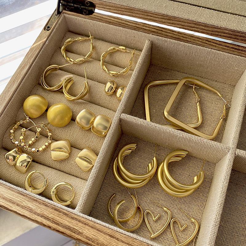 925 Silver Needle Hong Kong Style Retro Metal Earrings Women's High-Grade Geometric Simple Bracelet Ear Clip All-Match Exaggerated Commuter Earrings
