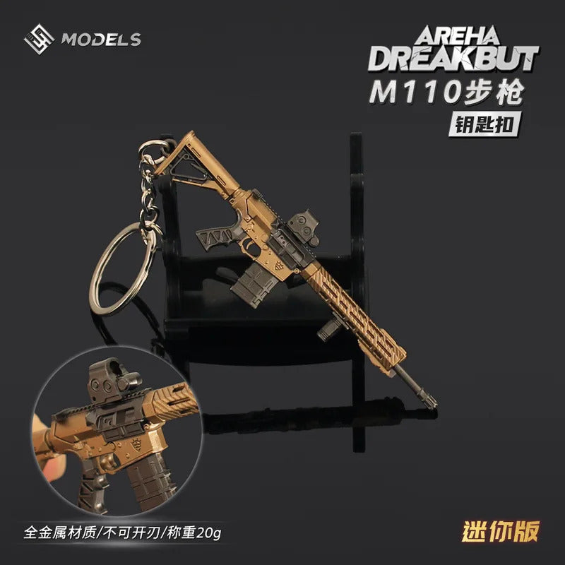 9cm Arena Breakout Gun Keychains Mini M110 Rifle Model Alloy Small Gun Toy Games Weapon Keychain Pendant Game Peripherals Gifts