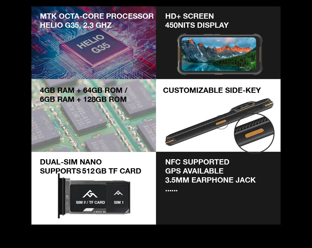 AGM H5 6+128G Rugged Smartphone Large Capacity 7000MAH IP68/IP69K Cell Phone 3.5W Loud Speaker Night Vision