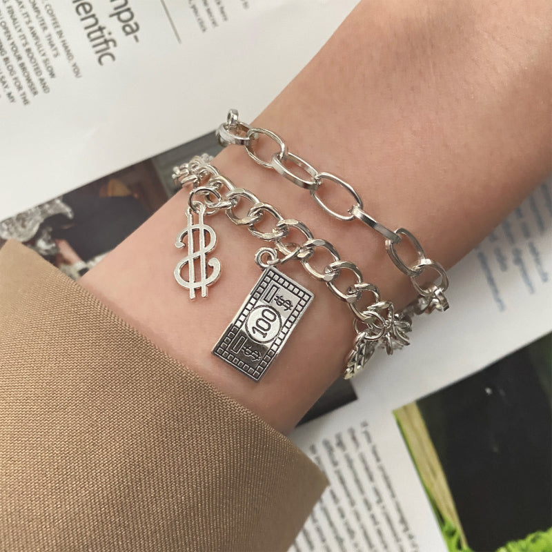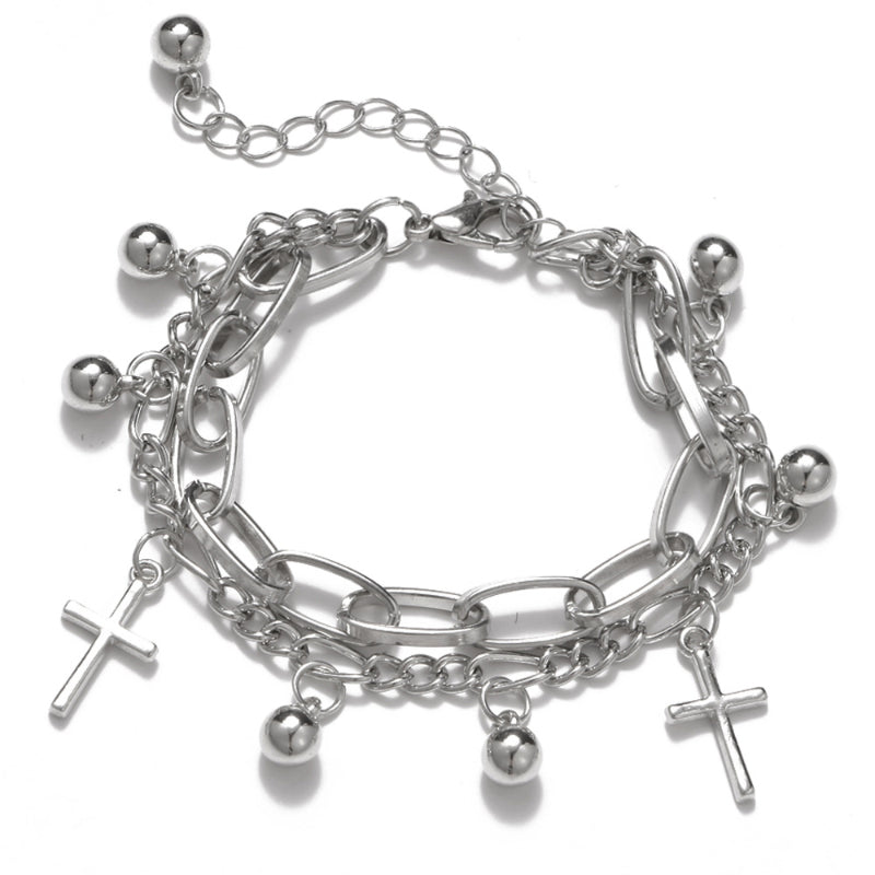 Bear Bracelet Korean Style Design Cold Style Cross Pendant Double Layer Bracelet