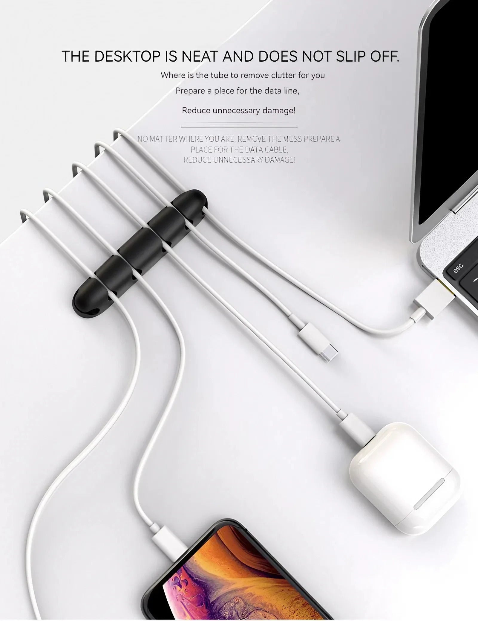 Cable Organizer Feel Free To Stick Multi-function Desktop USB Cable Organizer Wire Winder Silicone Tie Fixer Wire Management