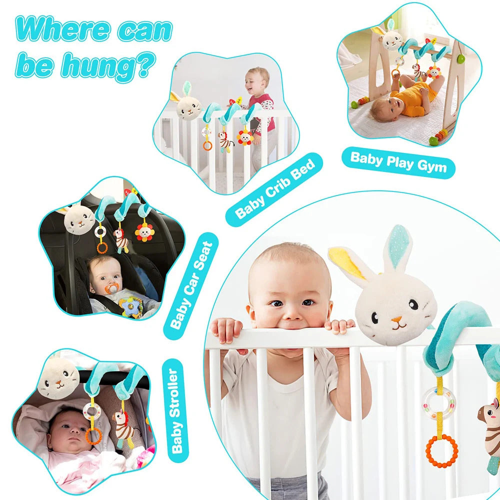 ♫Parent-Child Interaction: Design with music box, sound paper and BB squeaker functions, Perfect for you to interact with baby, they will be attracted and have fun playing with the cute car seat toys in anywhere, free yourself to do some works.