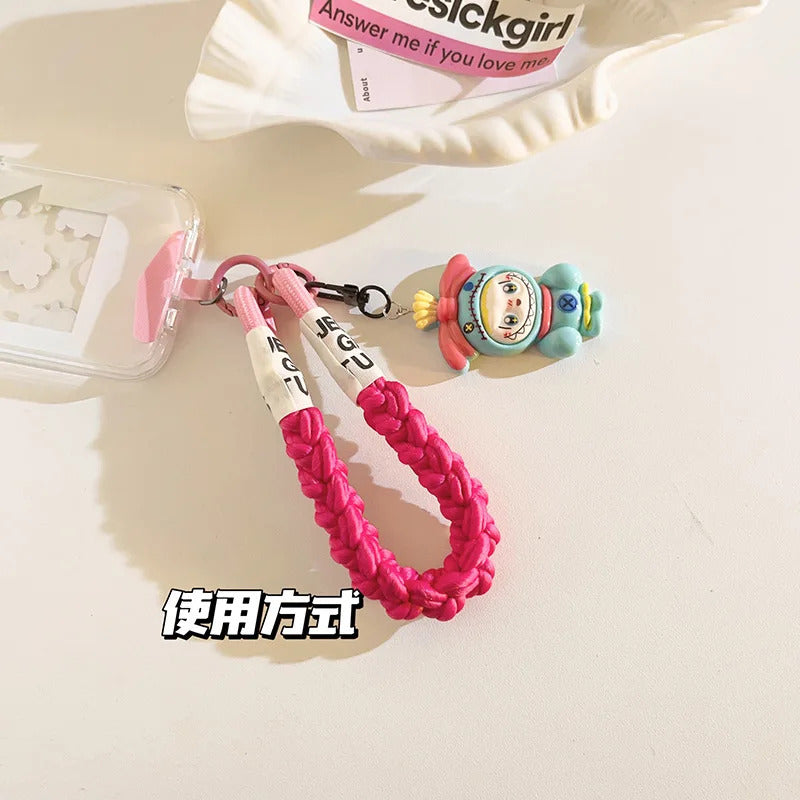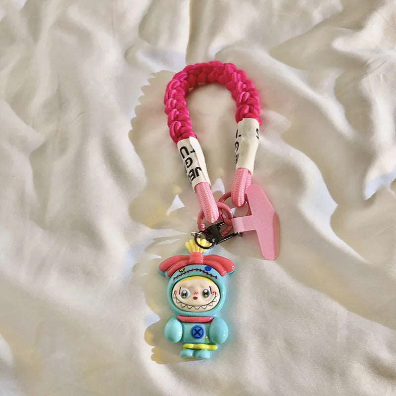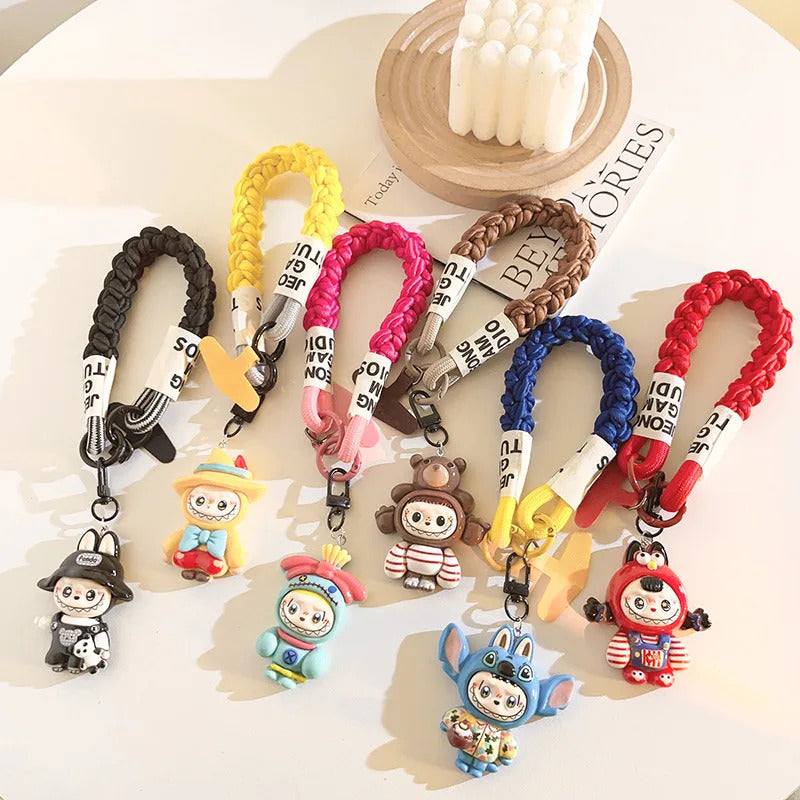 Cartoon Labubu Cartoon Cute Pendant Mobile Phone Lanyard Braided Keychain Backpack Decoration Wristband Decoration Toy Gift