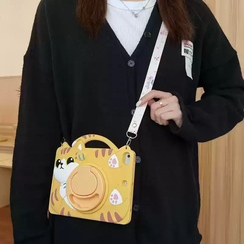 Cartoon Lucky Cat Silicone Case For Samsung Galaxy Tab A9 A7 Lite 8.7 S6 Lite 10.4 A8 X200 X205 Slot 360° Rotating Stand Cover
