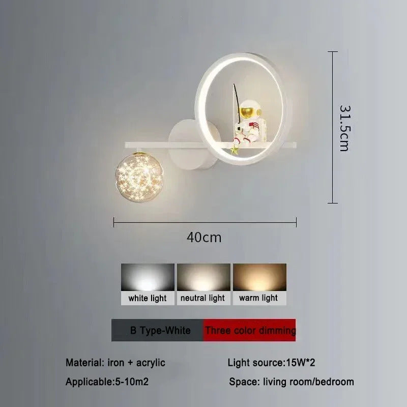 Children's Room Bedside Creative Astronaut LED Wall Lamp Night Light Space Decor Living Room Bedroom Background Wall Lighting