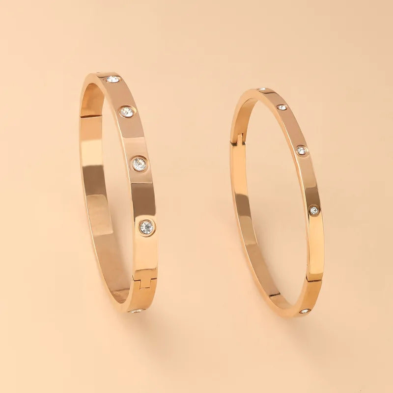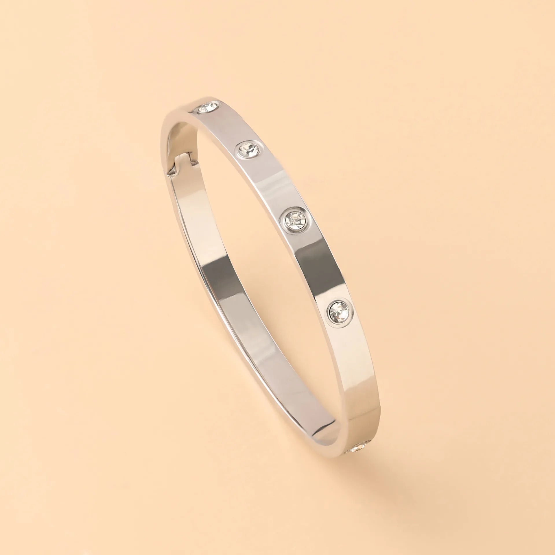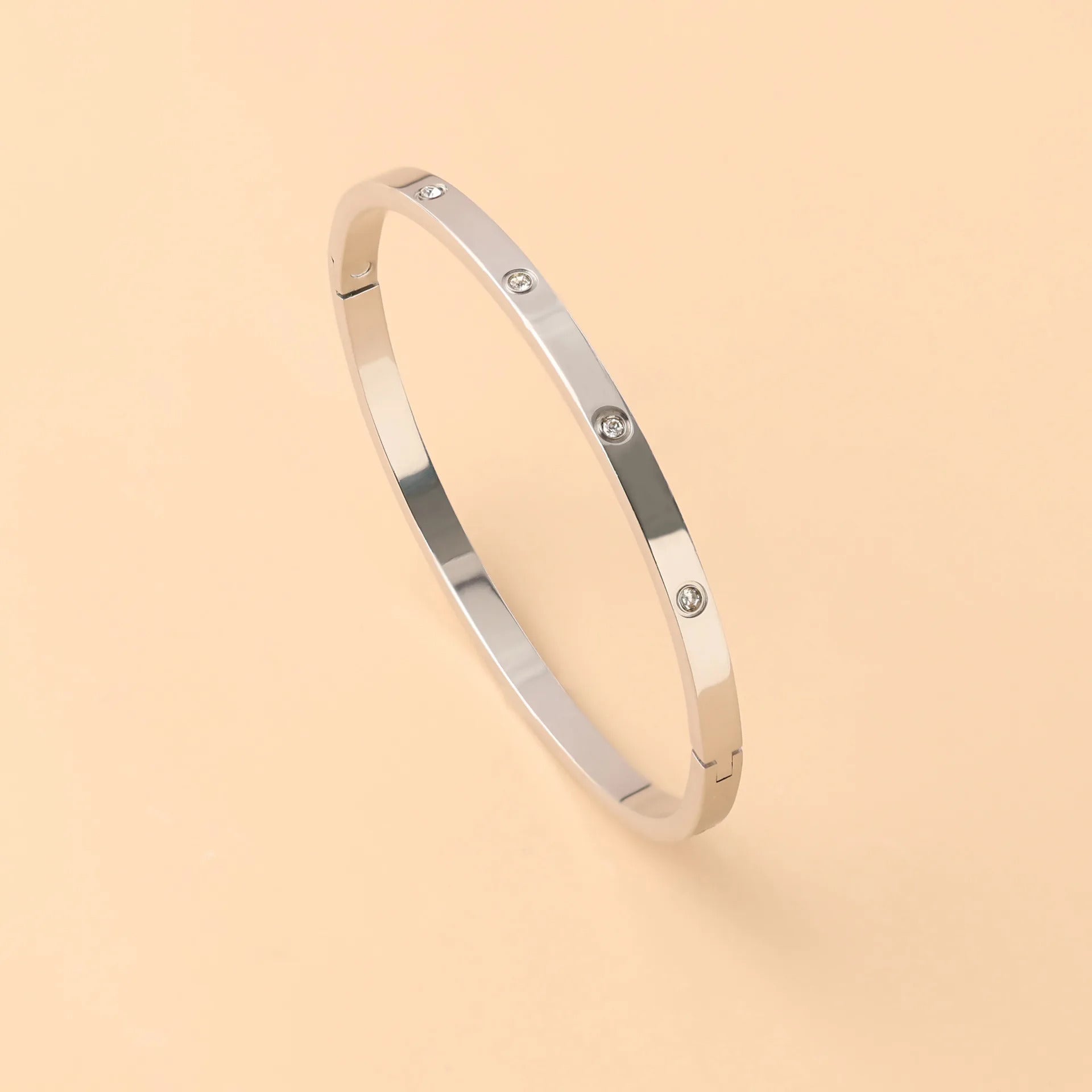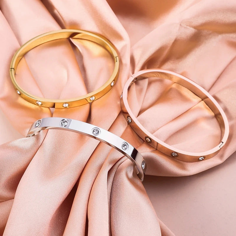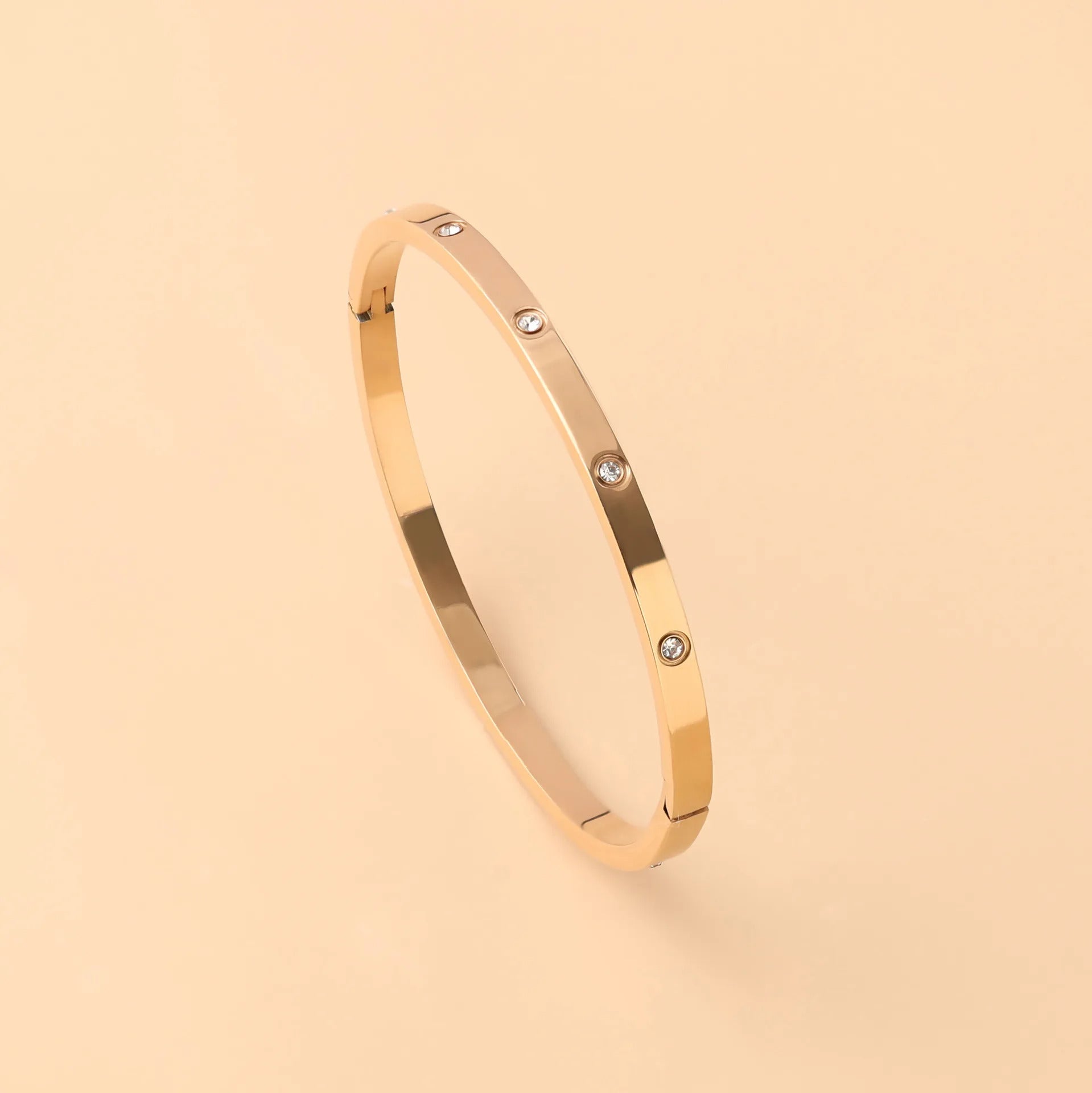 Classic Stainless Steel Diamond Oval Bracelet Set Simple High-End Solid Color Non-Fading 18k Bracelet Versatile Daily Jewelry