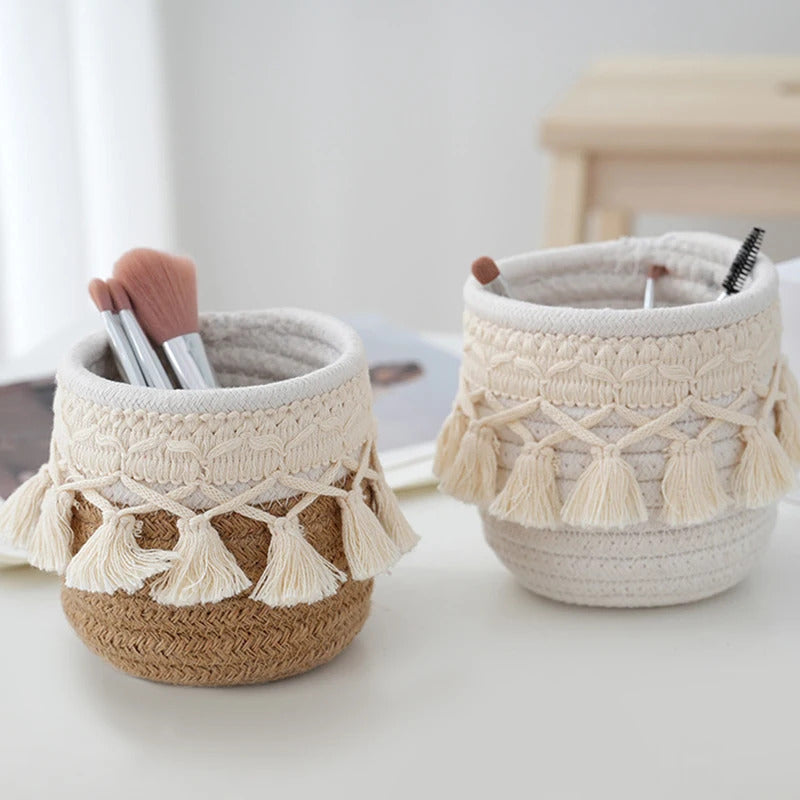 Comb Brushes Mini Storage Basket Boho Cosmetic Brushes Storage Makeup Brushes Container for Vanity Desktop Bathroom
