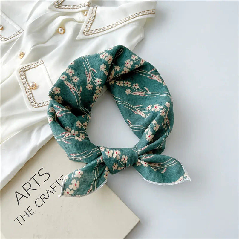 Cotton Linen 55cm Square Scarf Women Kerchief Flower Print Geometric Neckerchief Scarves Headwrap Bandanas Hairband Headbands