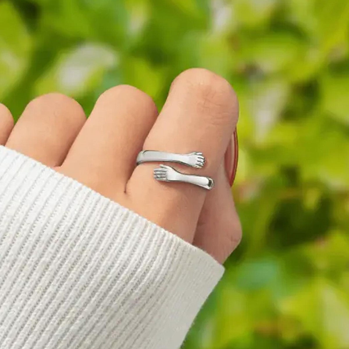 Creative Engraving Love Hug Open Adjustable Couple Hands Hug Ring Direct Sale
