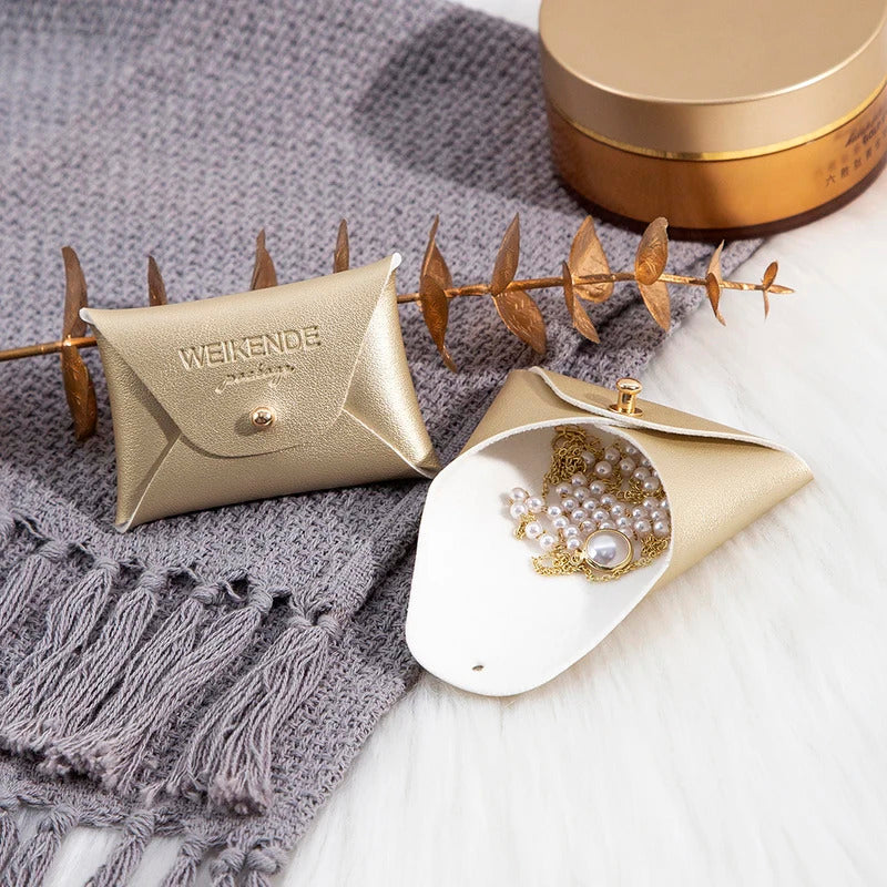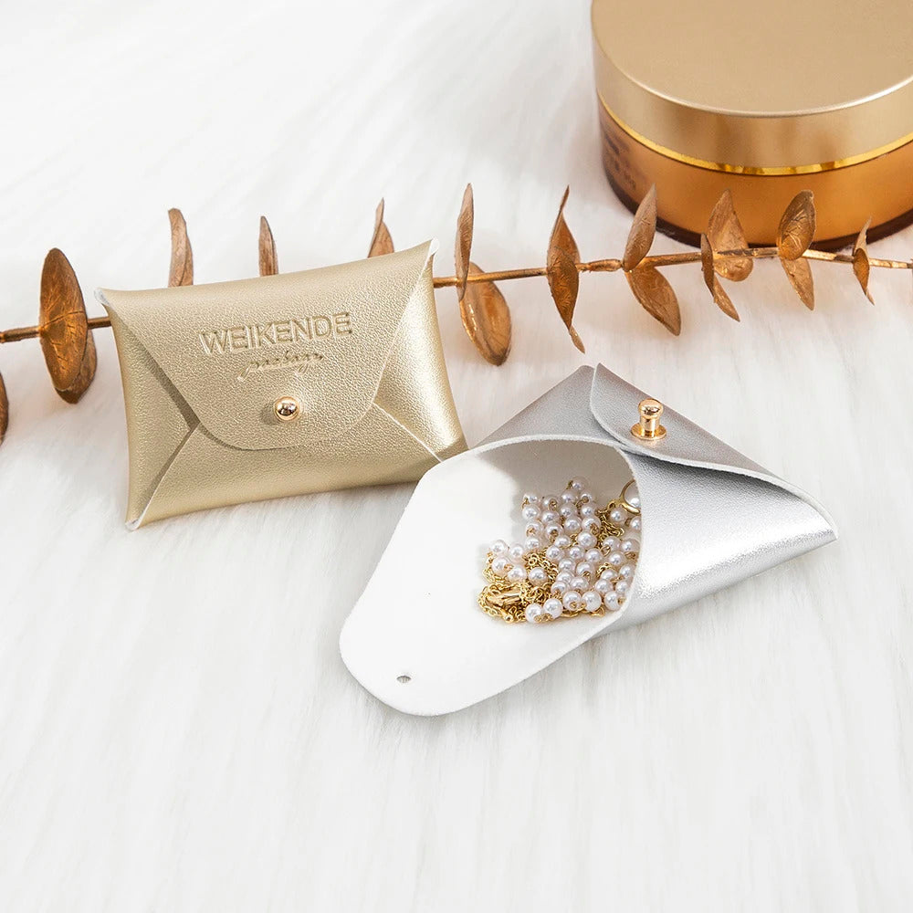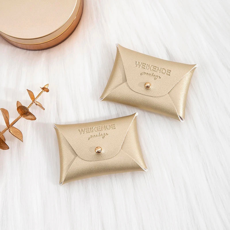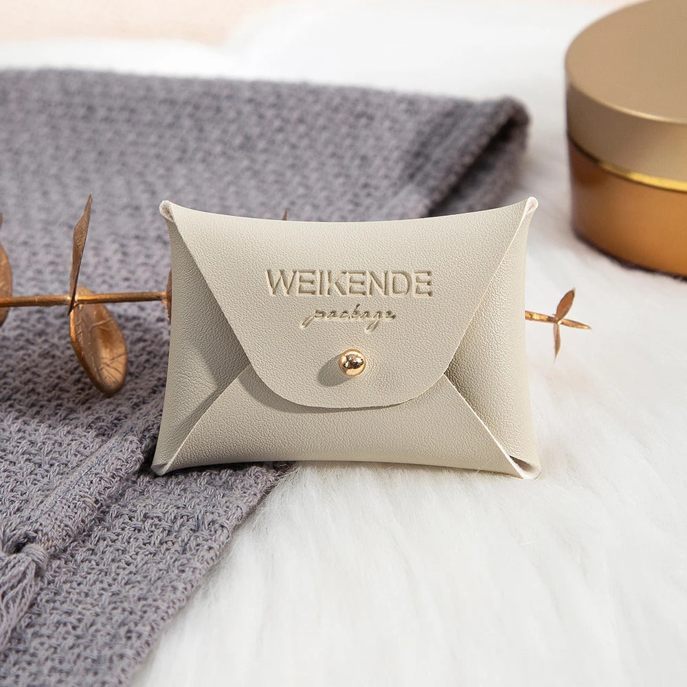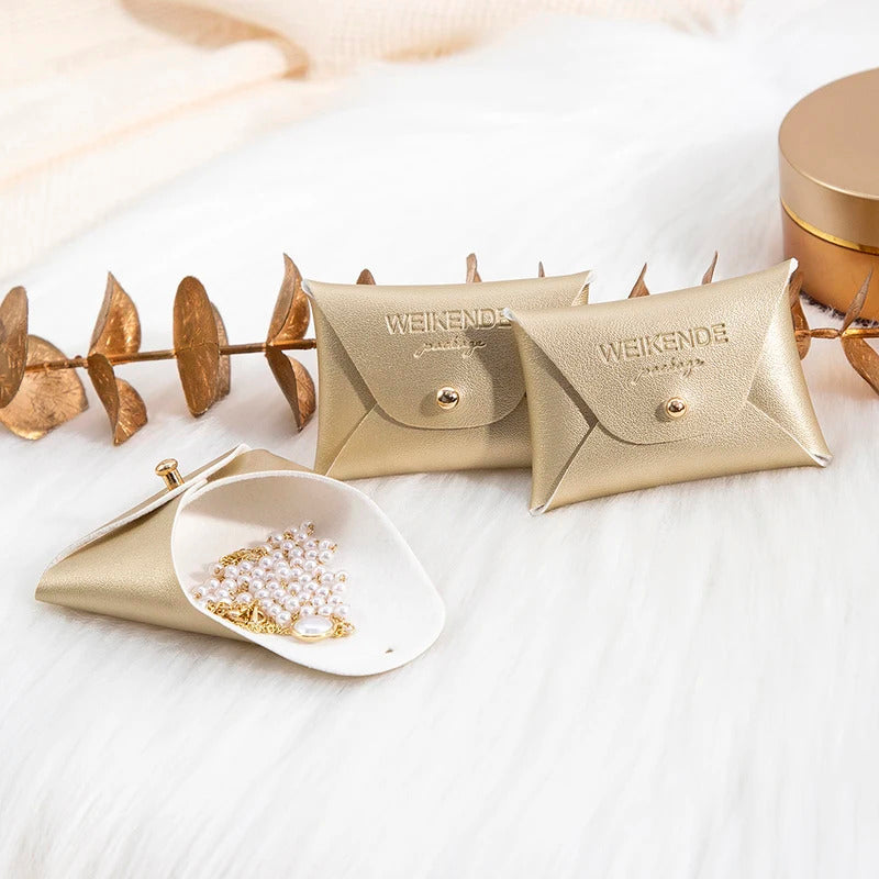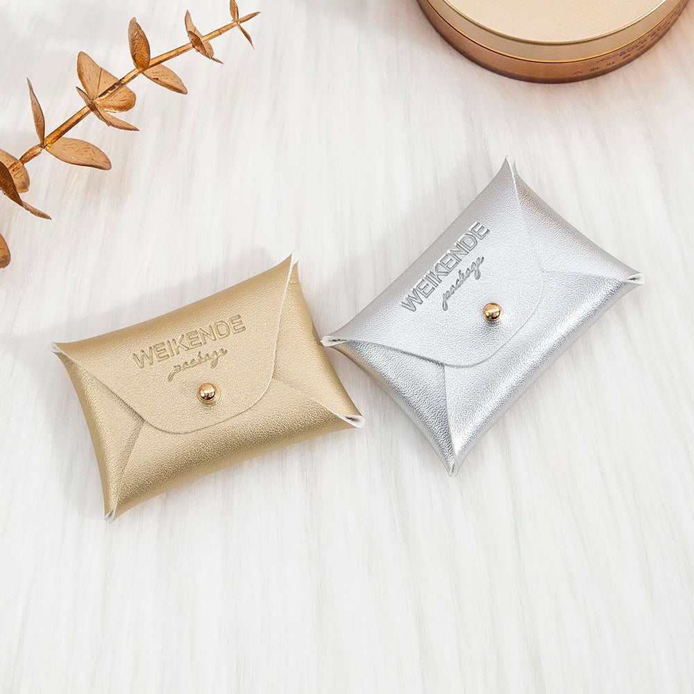 Custom Logo Embossed PU Leather 50/100pcs 5x7cm Gold Jewelry Bag Rings Earrings Necklaces Button Organizer Storage Gift Pouch