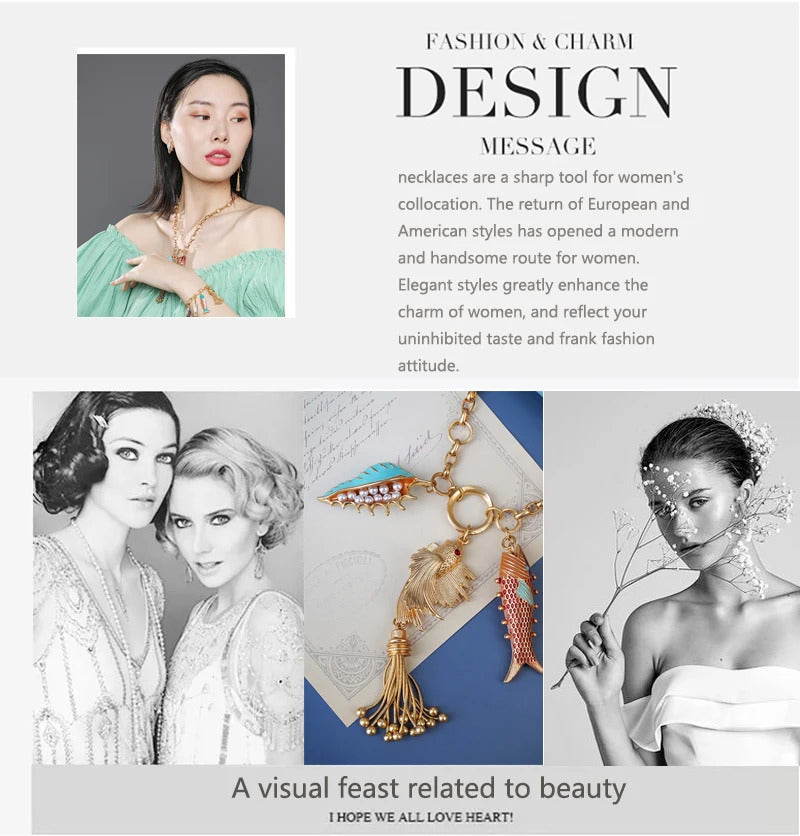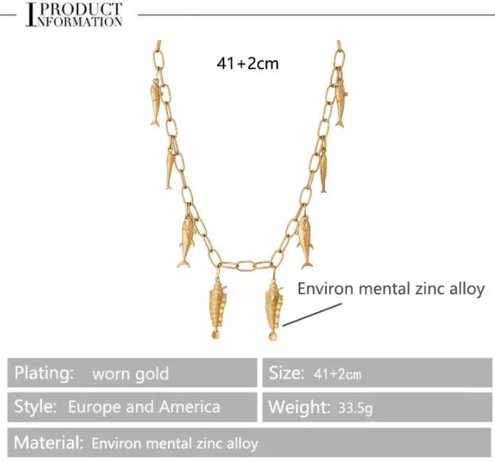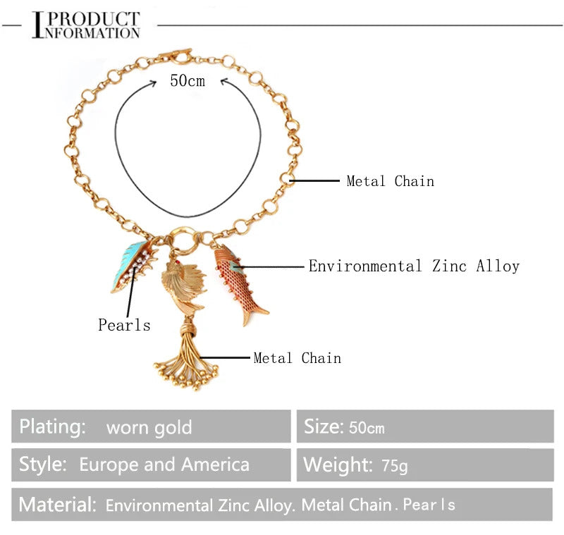 Cute Sea whale Necklace Pendant Chain Fish Fashion Jewelry Chic Mermaid Tassel Conch Dangle Choker Ocean Beauty Accessory