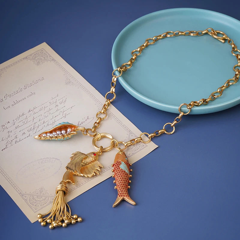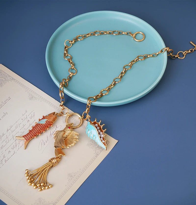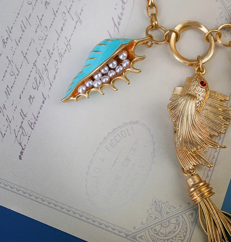 Cute sea whale necklace pendant chain fish fashion chic jewelry mermaid tassel conch dangle ocean beauty accessory