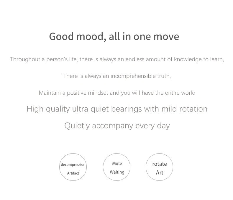 Specifications:Material: All Aluminum AlloyDesign and Style: Visual Illusion Levitating GyroscopeUsage and Purpose: Stress Relief and Focus EnhancerTypical Adaptive Scenario: Office, Home, TravelShape or Size: Compact and PortablePerformance and Property: Smooth Spinning ActionFeatures:**Unmatched Craftsmanship and Design**The Desktop Rotating Gyroscope is not just a fidget spinner; it's a work of art. Its sleek silver metallic accents and all-aluminum alloy construction promise durability and a premium feel. The visual illusion levitating gyroscope is a testament to modern design, offering a unique and captivating spinning experience. The compact size makes it an ideal companion for those who value portability without compromising on style. **Enhanced Focus and Stress Relief**This fidget spinner is more than just a toy; it's a tool for focus and stress relief. The smooth spinning action of the gyroscope provides a tactile sensation that helps to calm the mind and enhance concentration. Whether you're at your desk, in a meeting, or on the go, this gyroscope is designed to be your silent companion, providing a subtle yet effective way to manage stress and maintain focus. **A Gift That's as Unique as the Person Receiving It**Looking for a thoughtful gift for the adults in your life? The Desktop Rotating Gyroscope is the perfect choice. Its unique design and visual illusion levitating feature make it a standout item that's sure to impress. It's not just a fidget spinner; it's a conversation starter and a statement piece. Give the gift of focus and style with this all-aluminum alloy spinner, a gift that's as unique as the person receiving it.