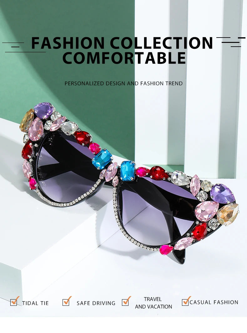 Diamond Cat Eye Big Sunglasses Women Oversized Sun Glasses
