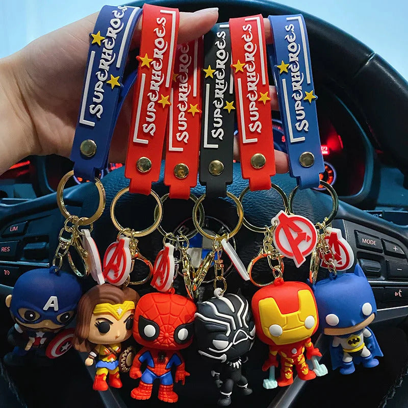 Disney Super Heroes Spider Man Captain America Black Panther Deadpool Car KeyChain Pendant PVC Model Kids Toys Children Gifts