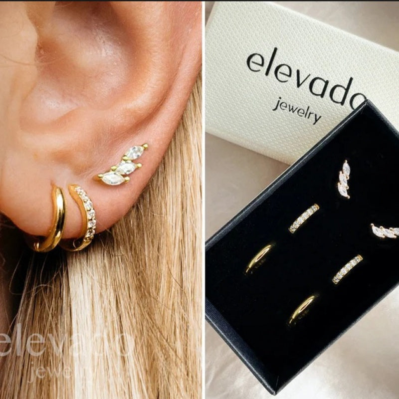 Ear Buckle Copper Plated Real Gold Micro-inlaid Zircon Fashion Women's Earrings Ear Buckle suit Earrings