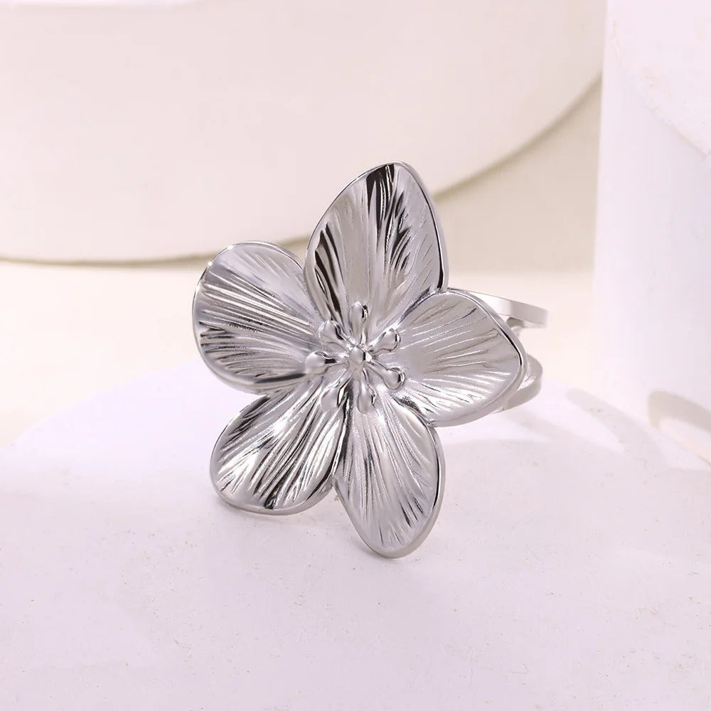 Elegant Stainless Steel Big Bloom Flower Rings For Women Gold Color New Style Open Rings Finger Jewelry Wedding Her Gift Punk