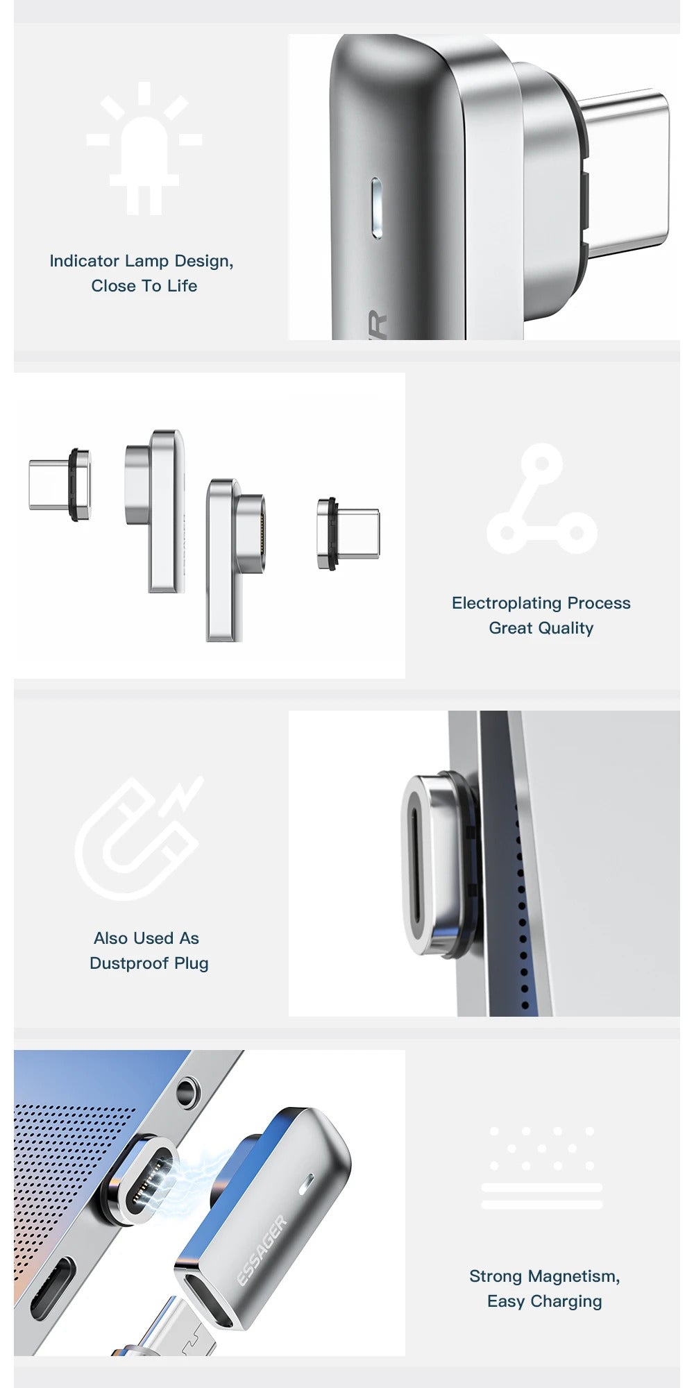 Essager PD 100W Magnetic USB C OTG Adapter Fast Charging Type C Magnet Connector 20Gbp Data Sync 4K@60Hz For Macbook Laptop