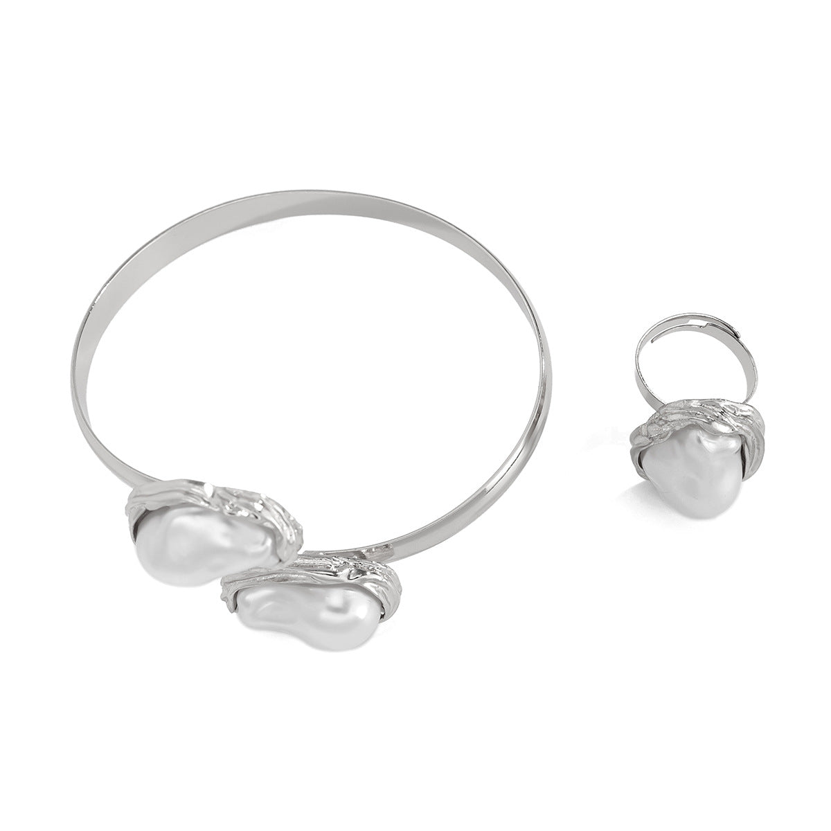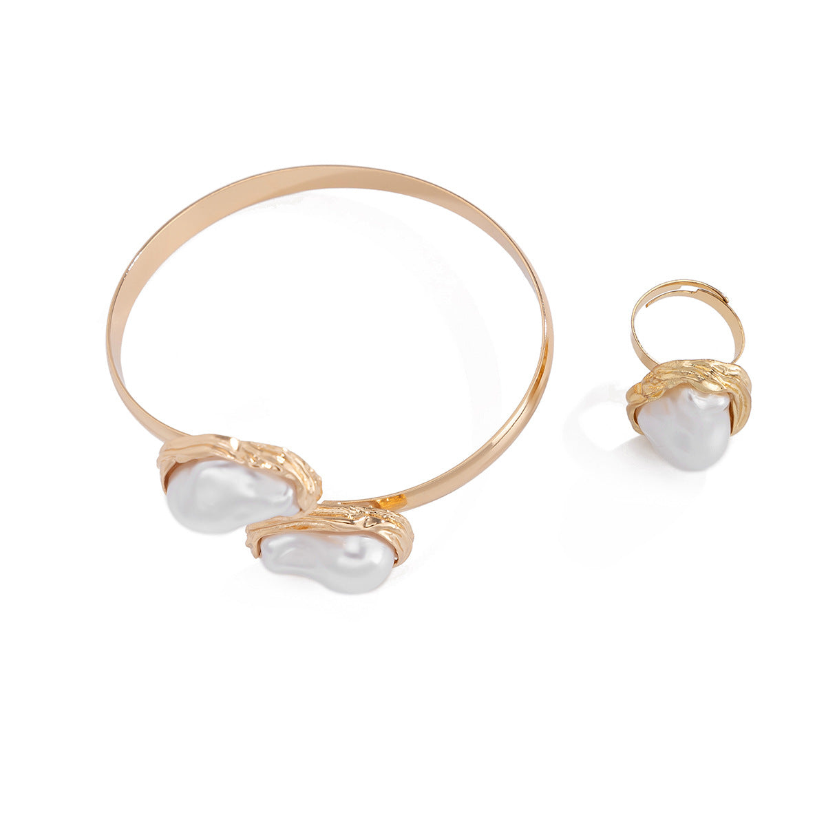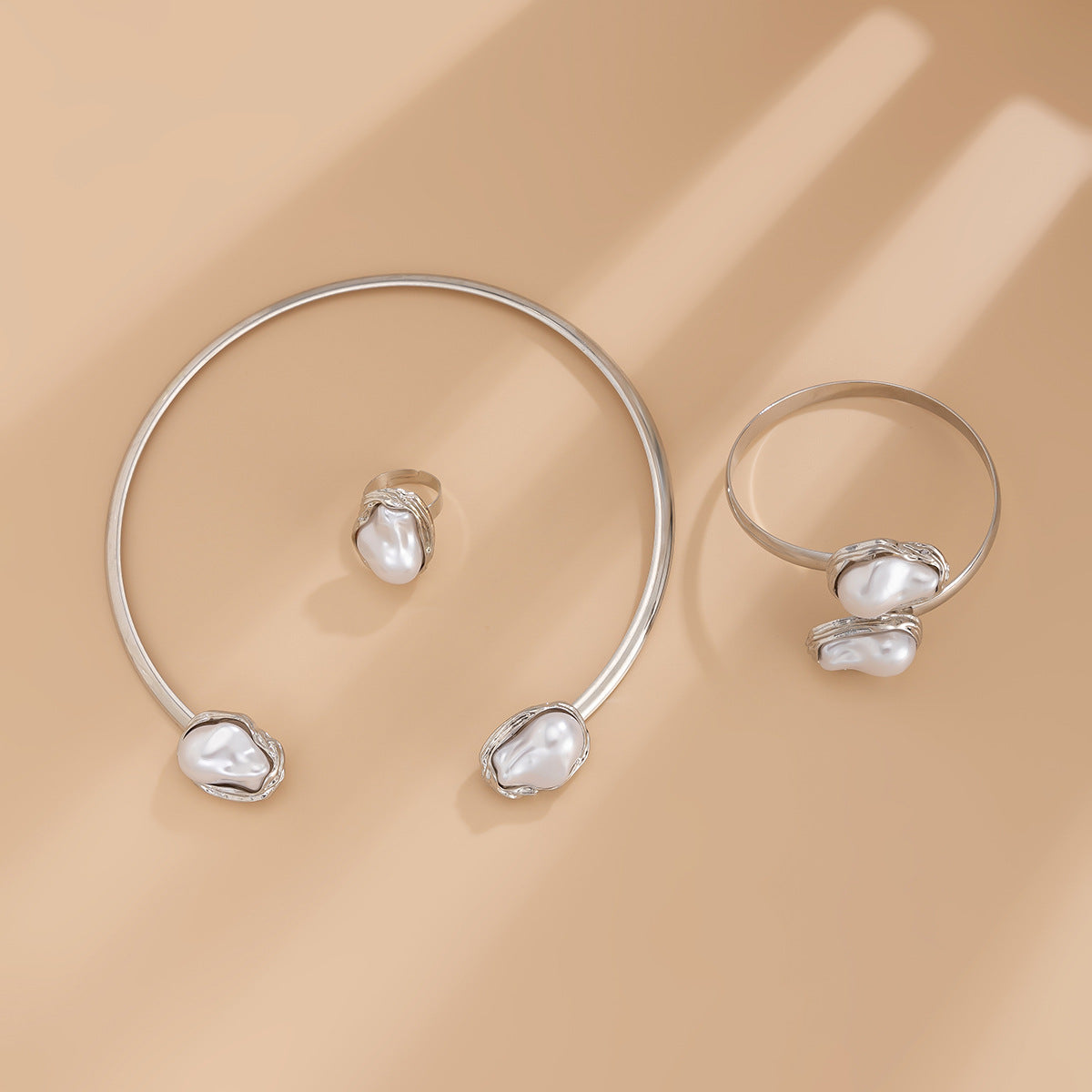 European and American Cross-Border Jewelry French Baroque Irregular Pearl Necklace Vintage Niche Alloy Clavicle Chain Set