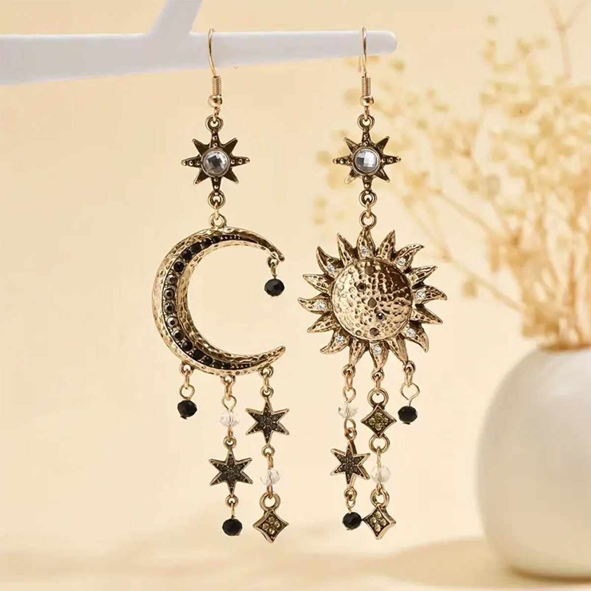 Exaggerated Long Sun Moon Retro Star Moon Earrings Women's Earrings Retro Style