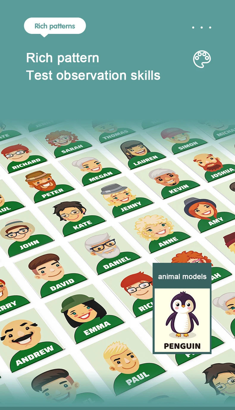 3.Ask each other questions in turn according to 24 different character patterns, and guess the character of the opponent's card first to win.